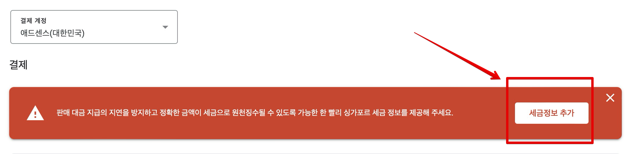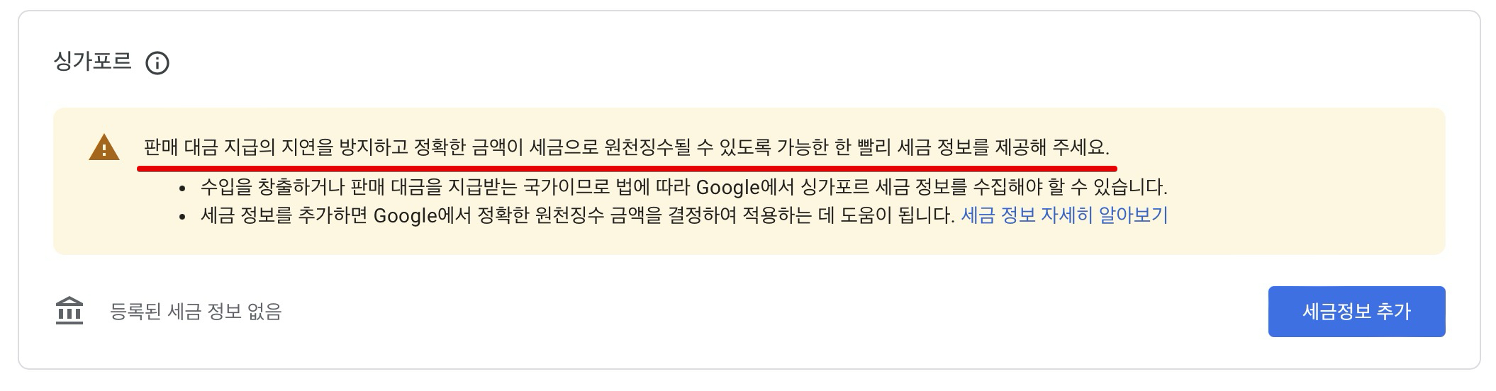 구글 애드센스 싱가포르 세금정보 내용