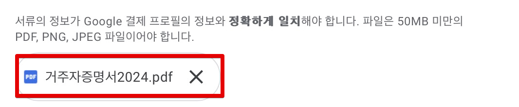 업로드 버튼 클릭후 위에서 PDF로 저장한 거주자증명서를 업로드합니다.