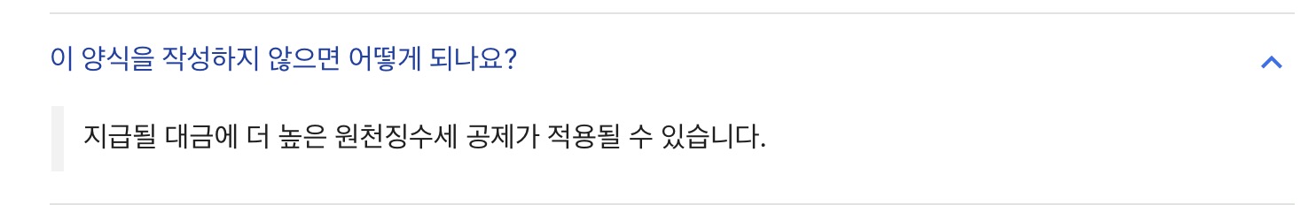 만약 세금정보 제출을 하지 않을 경우에는 원천징수세가 더 높게 책정될 수 있다고 합니다.