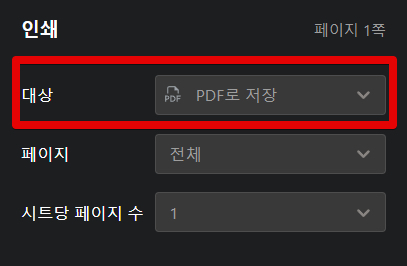 출력하기 버튼 클릭 후 프린터에서 PDF 저장을 선택하고 저장합니다.