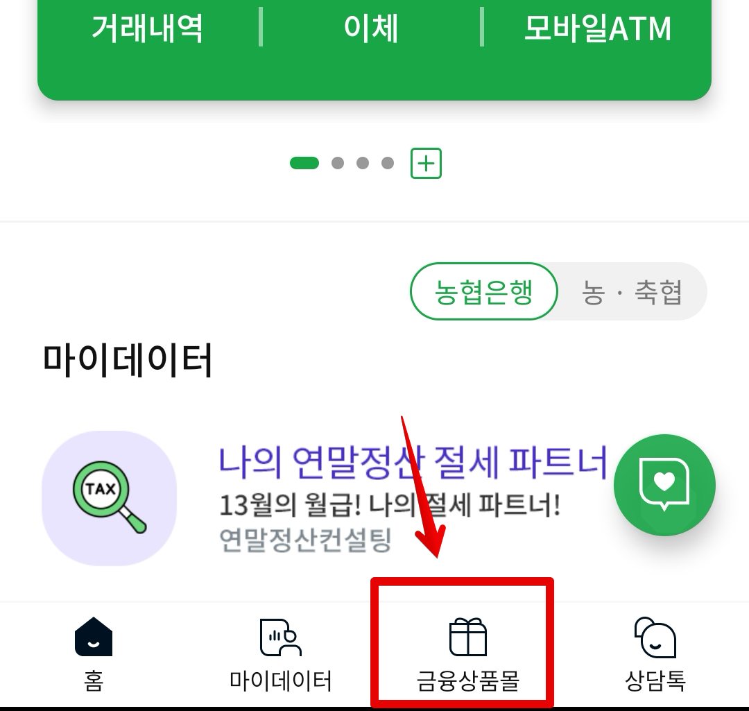 아래쪽 메뉴에서 [금융상품몰]로 들어갑니다.
