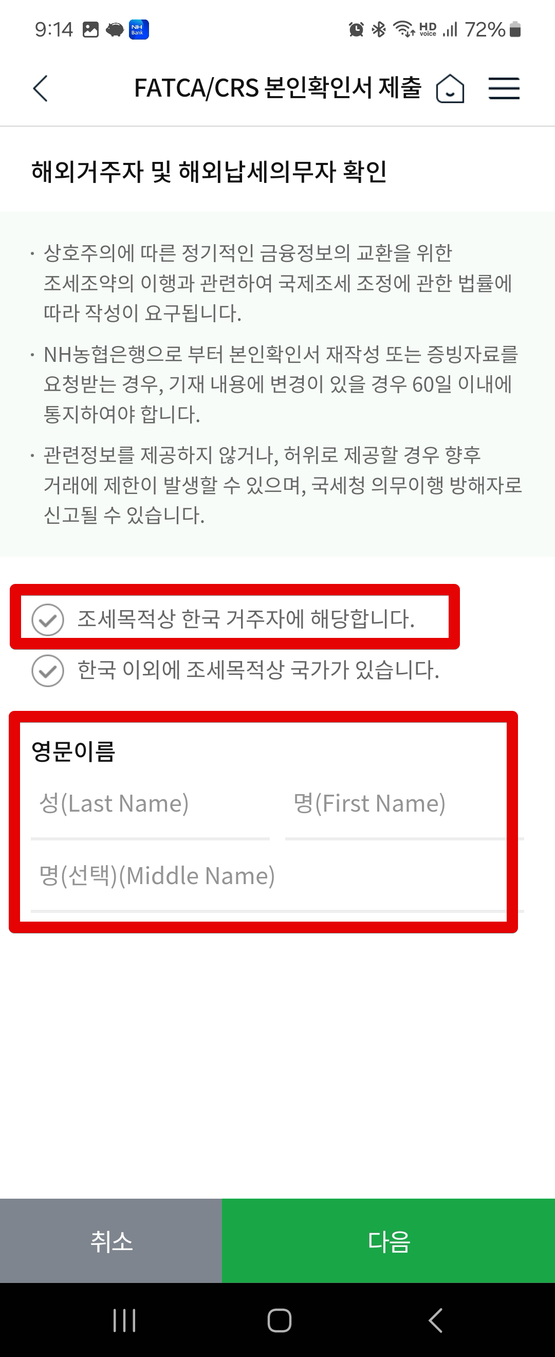 FATCA/CRS 등록으로 해외납세의무자 확인 등록해주고요.
