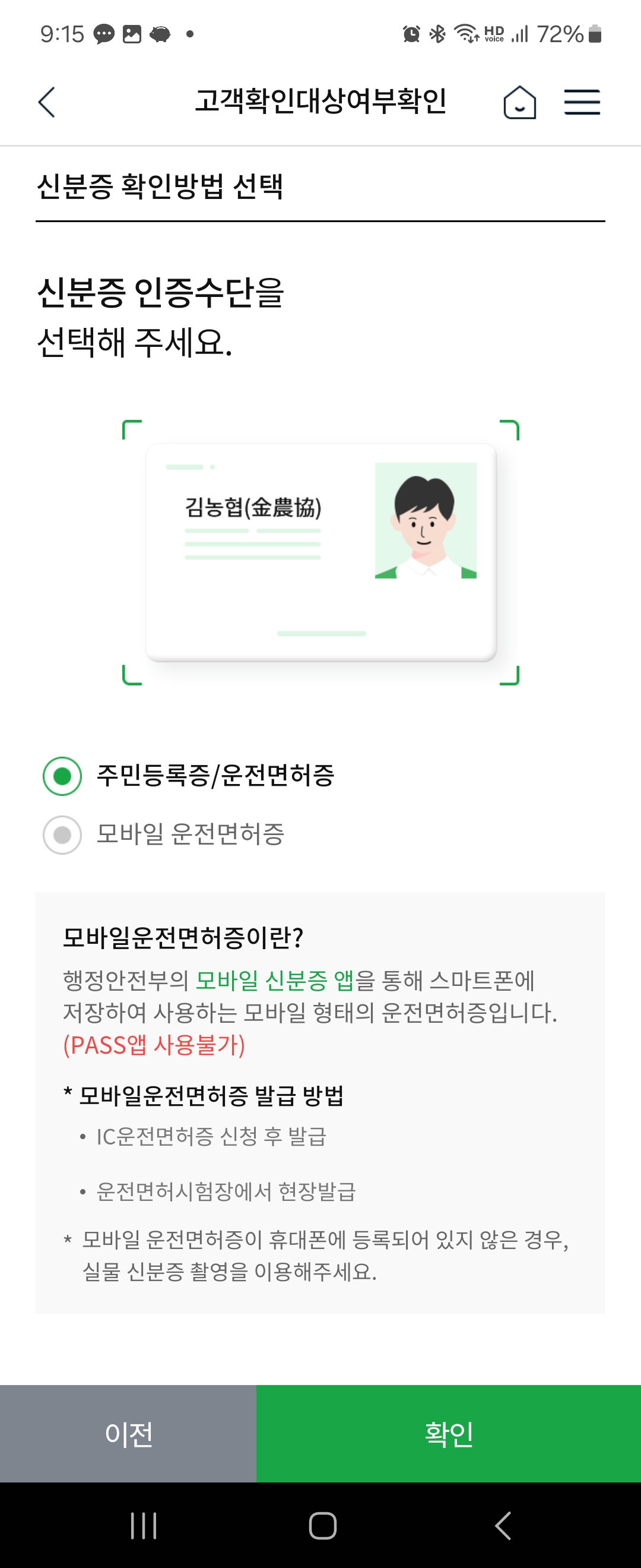 실명 인증은 주민등록증을 이용해 진행합니다.