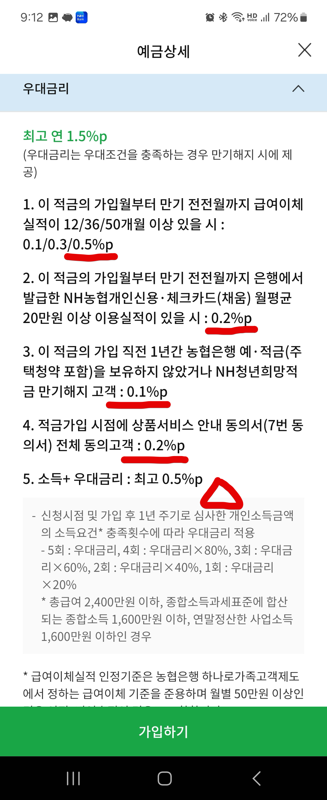 아무튼 금리 몇 퍼센트 보다는 비과세와 저축 자체에 집중하면 좋을 계좌인데요. 그래도 금리를 조금이라도 더 올리고 싶은게 사람 심리이므로 자세히 살펴보면 일반적으로는 우대금리를 약 1% 포인트까지 얻어올 수 있는 여지가 있습니다.