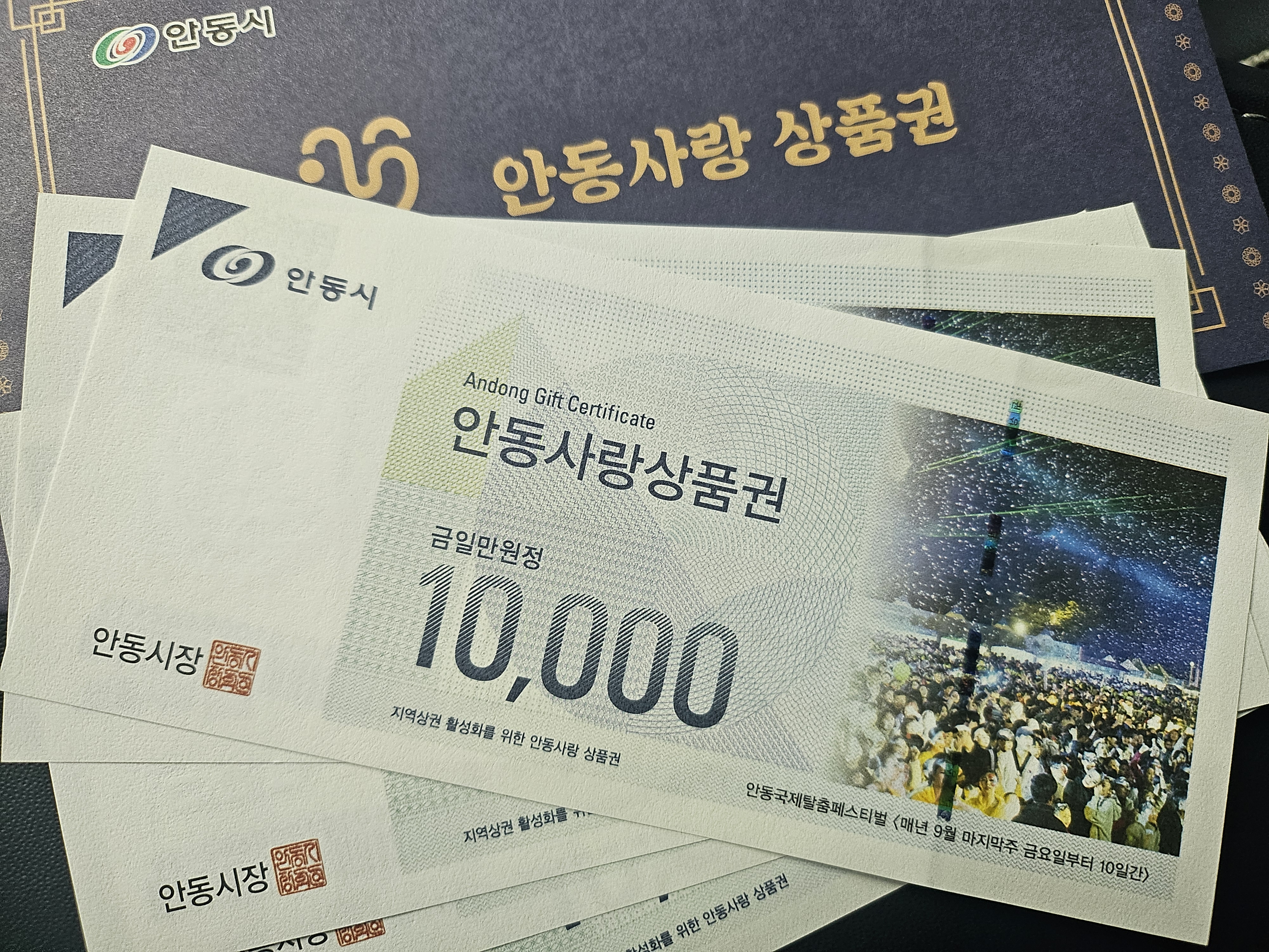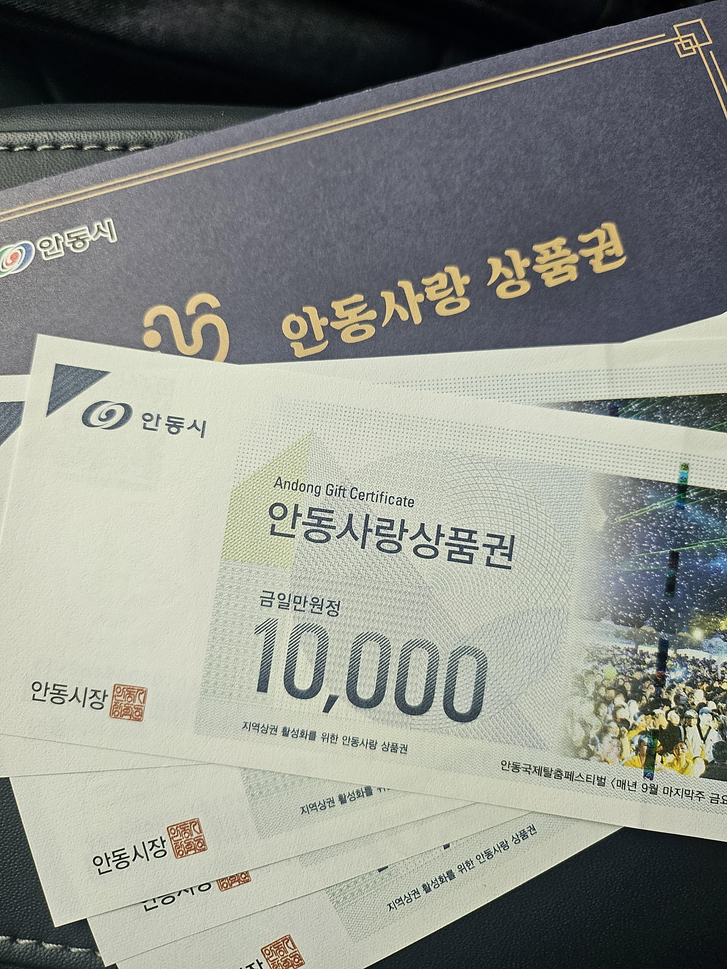 안동시는 안동사랑상품권으로 주는데요. 5만원어치를 주네요. 안동시에서는 안동사랑상품권 사용처가 꽤 많기 때문에 유용하게 쓸 수 있을 것 같습니다.