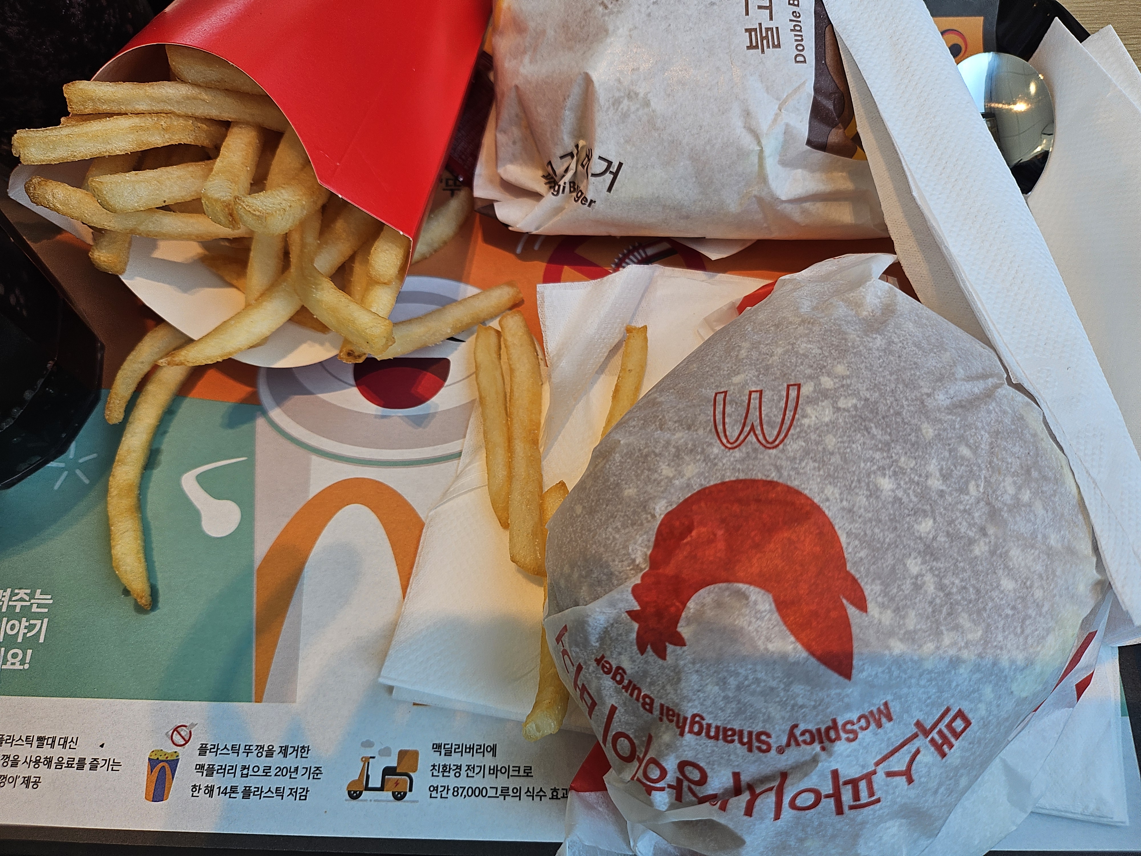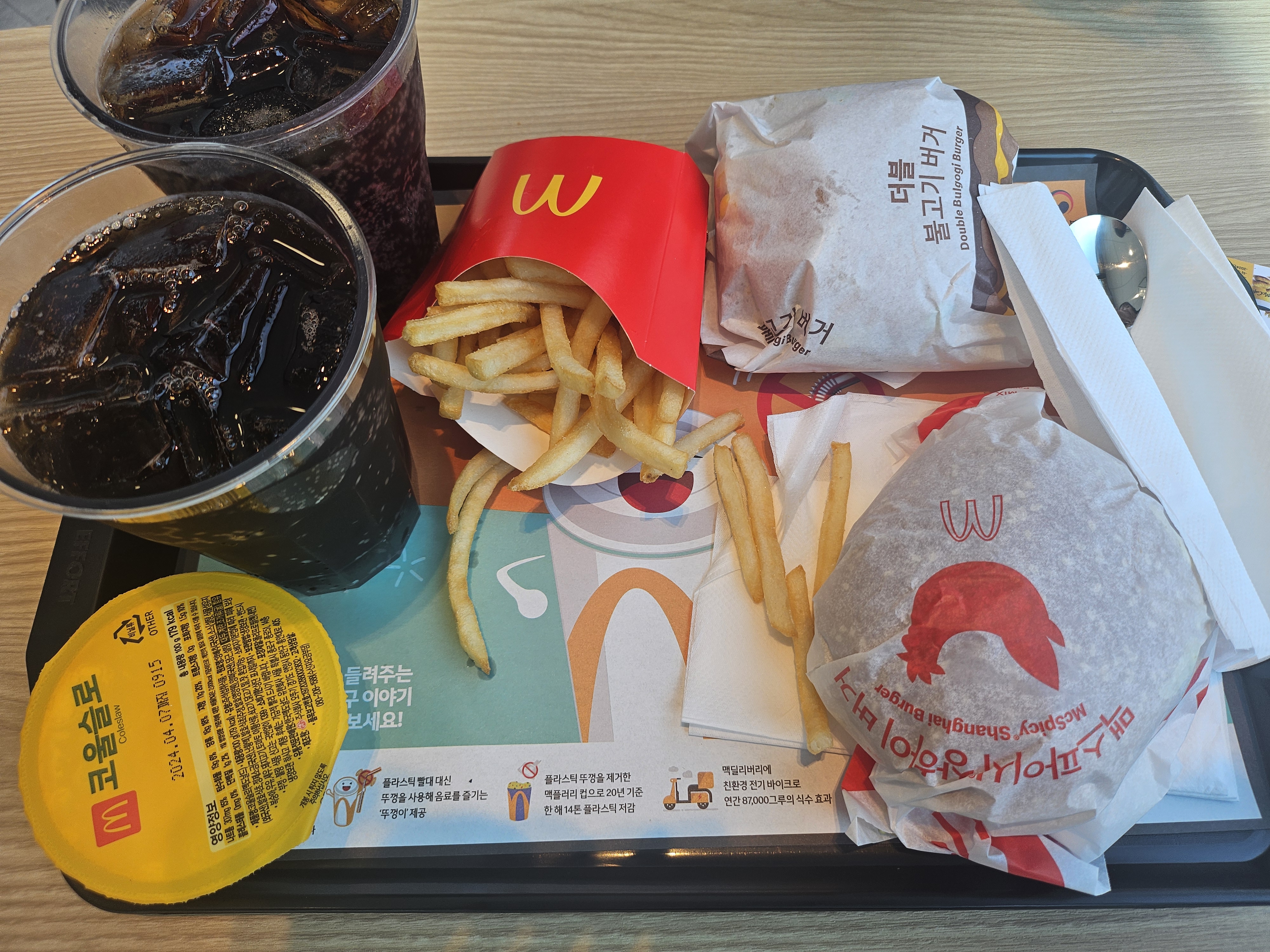맥도날드는 테이블서비스라고 해서 테이블까지 가져다 주는 서비스가 있어서 벨 울리면 직접 가지러가는 방식보다 훨씬 더 편합니다. 테이블서비스 이용법 모르시는분들은 키오스크 앞에서 직원분께 문의해보세요~ 편해요.