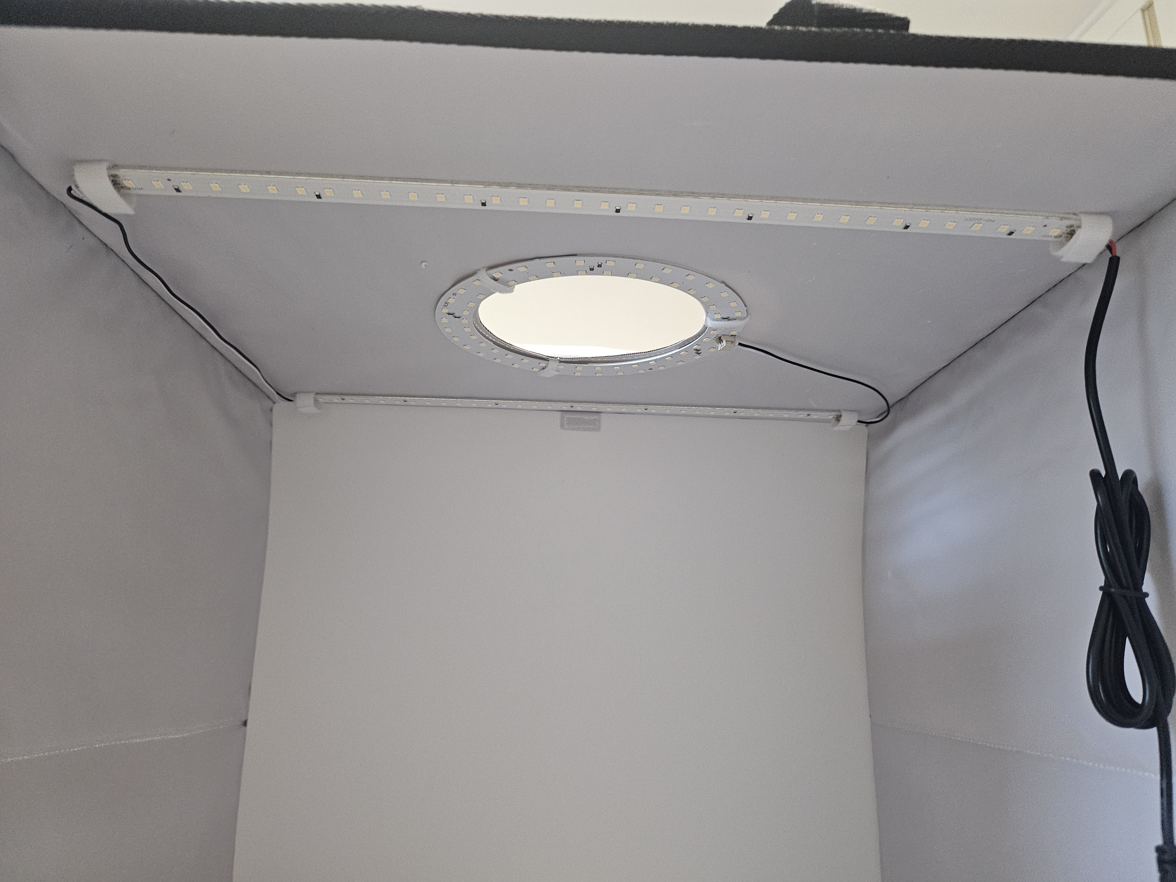 검은색 배경지를 설치하고 찍은 사진입니다. 배경지 삽입도 너무 쉬워서 이 정도로 쉬워도되나? 싶을 정도입니다. 뒷면에 꺾이는 부분에 조명으로 인해 흰색 선이 발생하는 부분은 다소 아쉽긴 합니다.