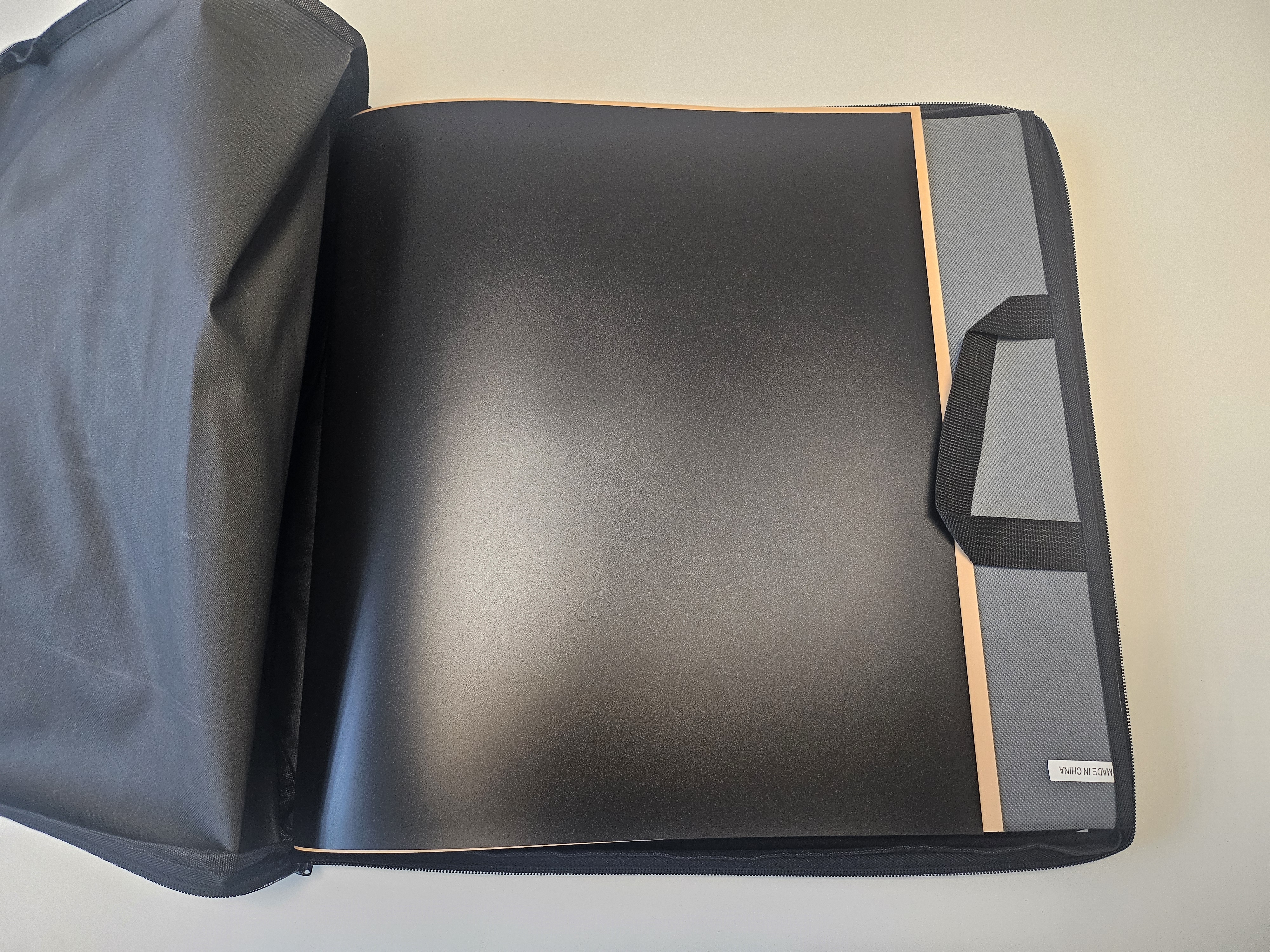 지퍼를 열면 안쪽에 배경지 3장이 기본 포함돼 있고 본품 제품이 들어있습니다. 무게도 가벼운 편이라서 들고 이동하기에도 좋았어요.