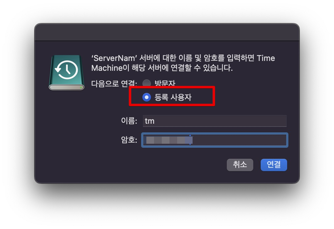 이제 맥북 타임머신 앱에서도 로그인이 되면서 하드를 지정할 수 있게 됐습니다.