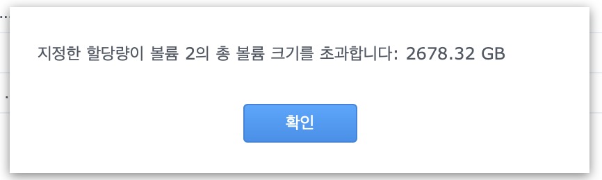 이제 용량을 할당해야하는데, 시놀로지 공식 메뉴얼을 읽어보니까 사용 가능한 용량은 최대치보다 조금 낮게 설정하라고 돼 있었는데 저는 그냥 최대치로 설정해주었습니다.