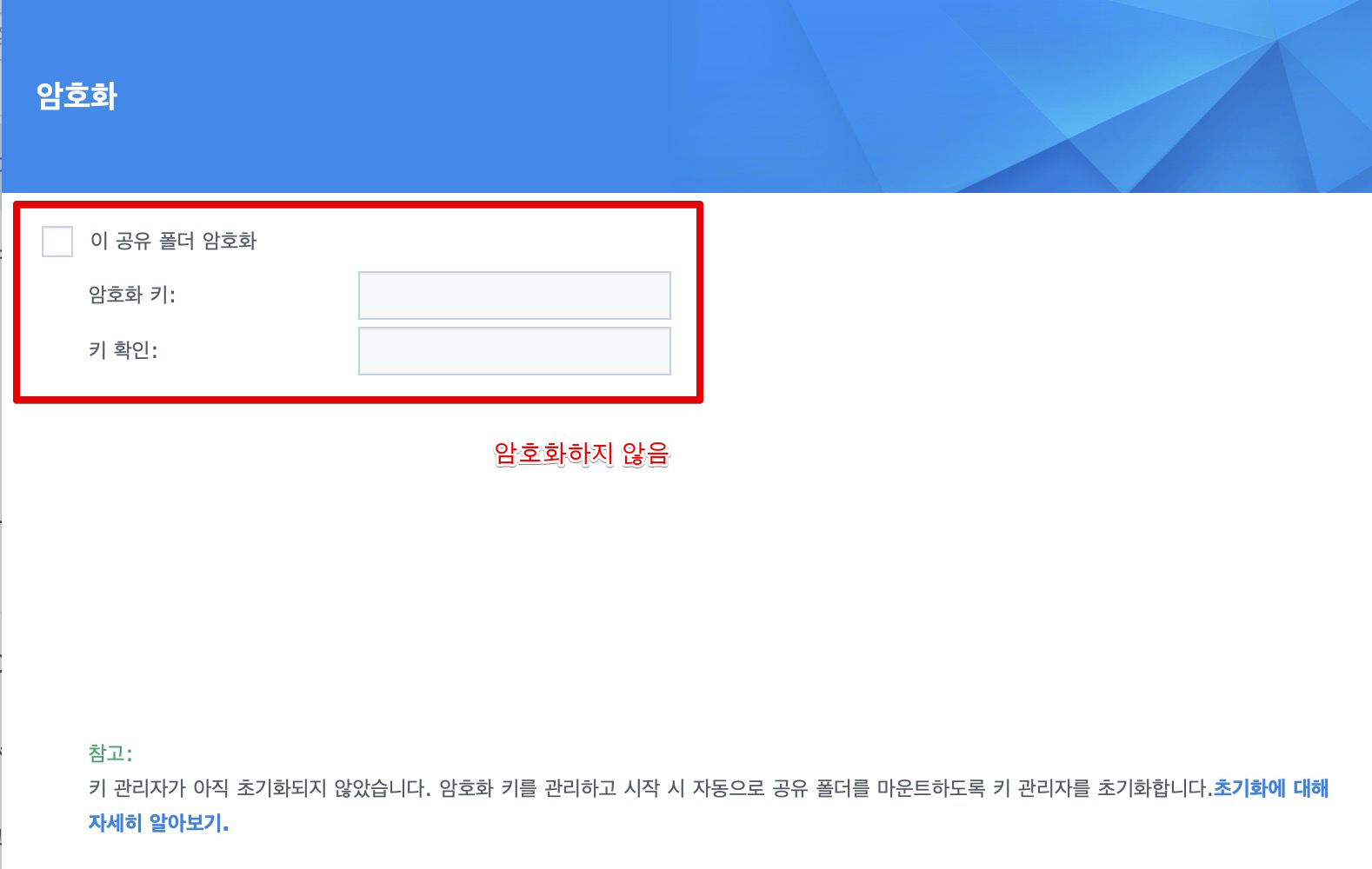 암호화 설정에서 아무것도 만지지 않고 넘어갑니다.