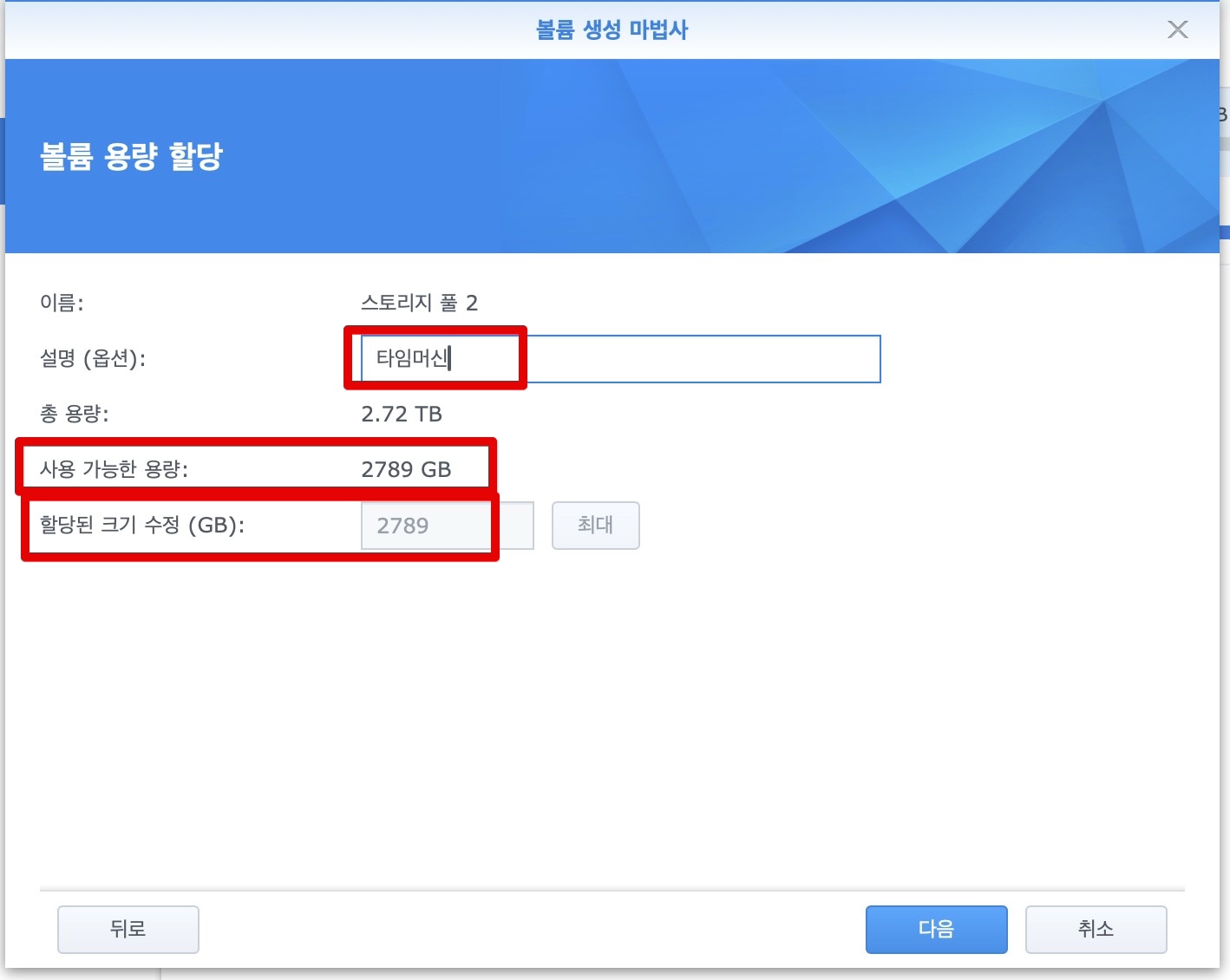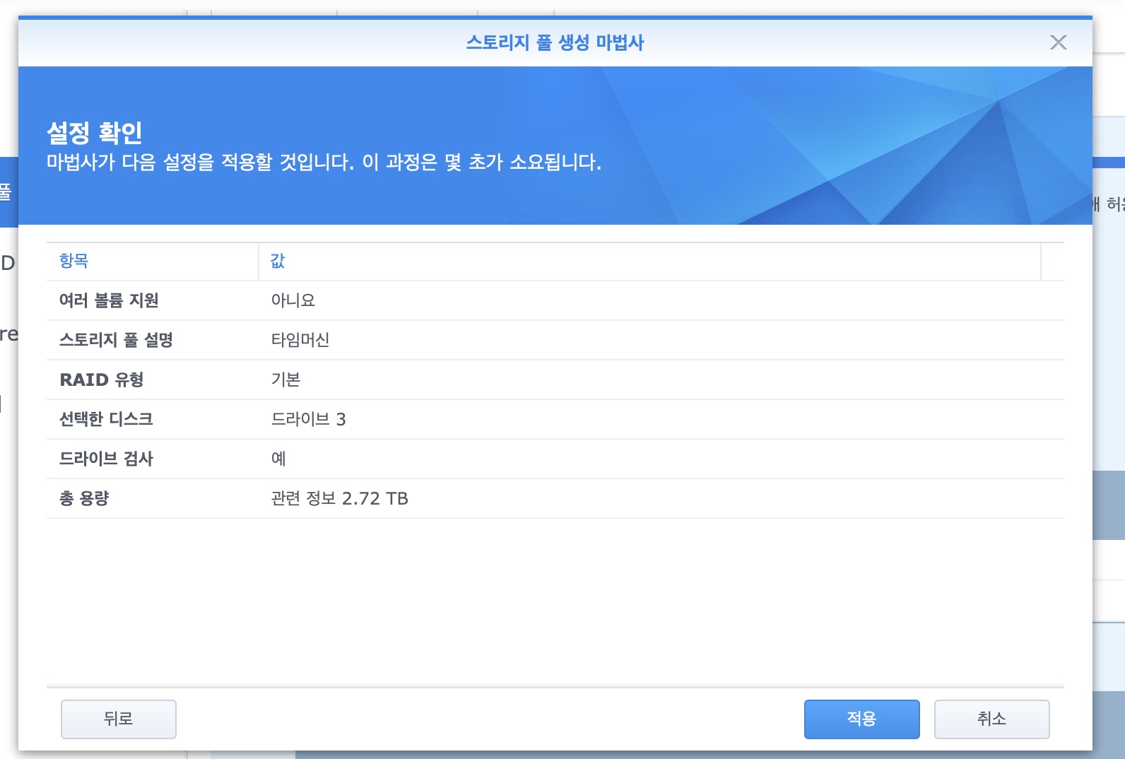 시놀로지 나스 맥북 타임머신용 볼륨 생성하기