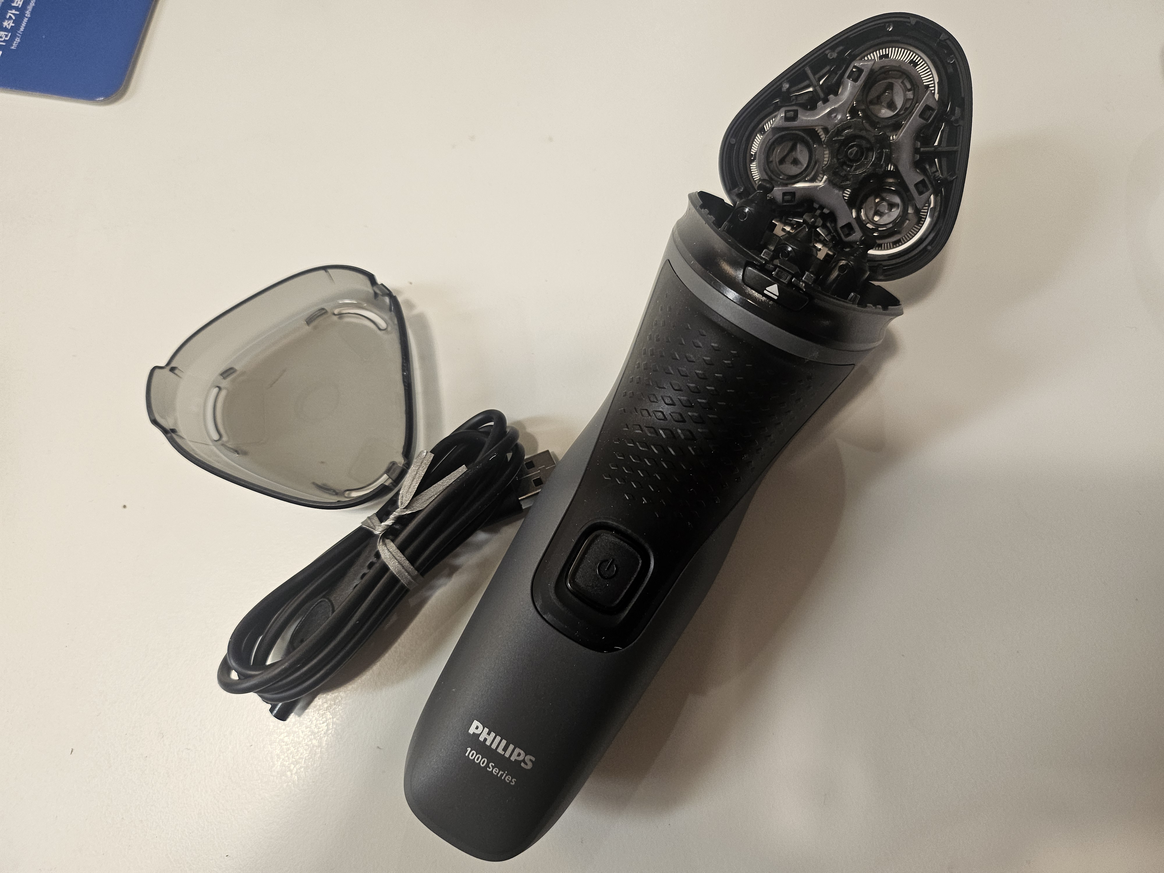 기존에 쓰던 필립스 전기면도기 3000 시리즈랑 비슷한 생김새인데 아주 약간 디테일에서 차이가 있더라고요. 배터리 표시 부분도 없어졌고, 뒷부분에 있는 트리머도 1000 시리즈에는 빠져있습니다. 그런데 가끔씩 트리머가 필요한 경우가 있어가지고, 저 같은 경우에는 기존에 썼었던 3000 시리즈, 지금은 고장난 그 제품은 버리지 않고 가지고 있다가 트리머가 필요할 땐 쓸려고 합니다. ㅎㅎ