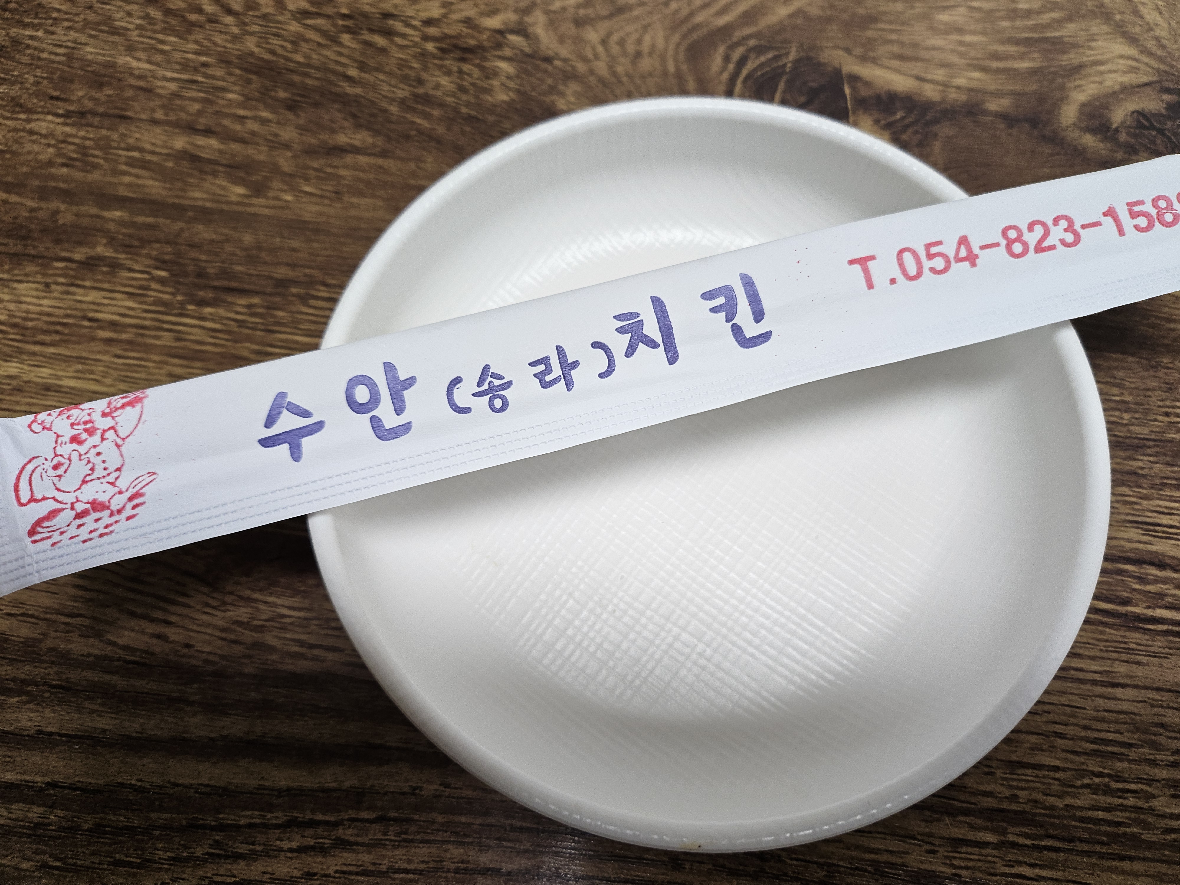 젓가락에 수안치킨이라고 돼 있네요. 송라는 무슨 뜻인지 잘 모르겠고... 전화번호를 기반으로 체크해보니까 예전에 이 자리가 페리카나 자리였더군요.
