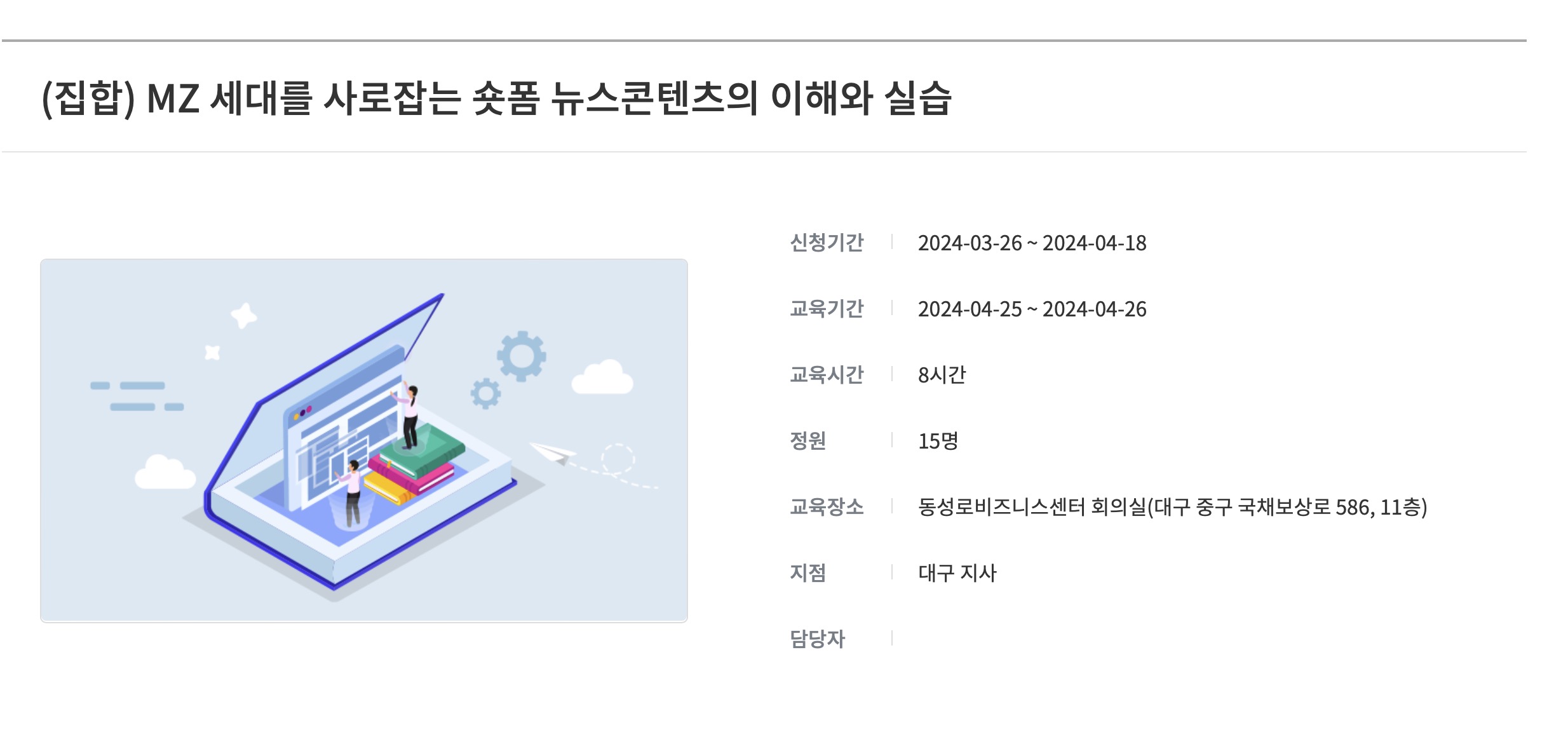 - 강의제목 : MZ세대를 사로잡는 숏폼 뉴스콘텐츠의 이해와 실습 전문연수