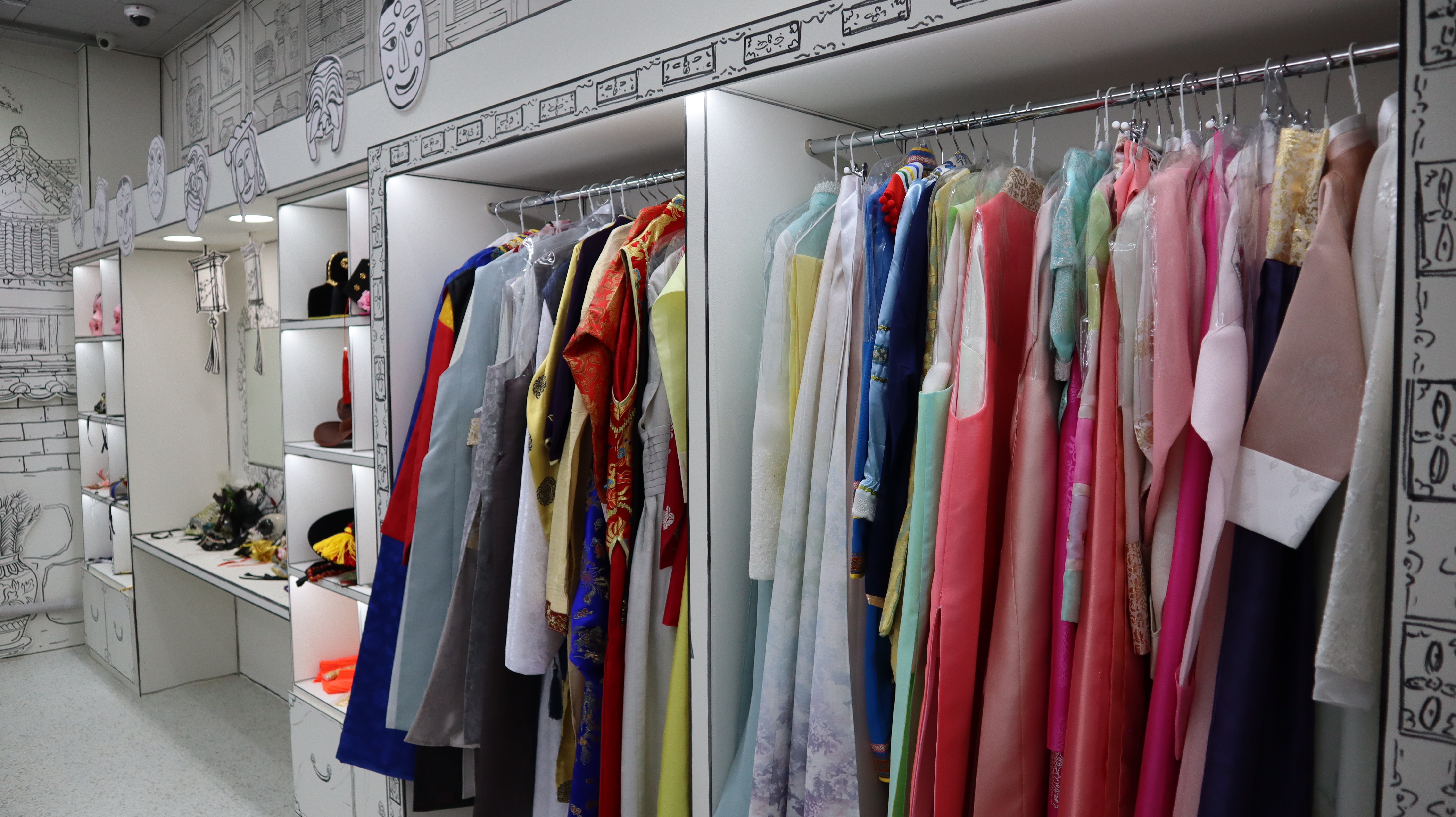 안동 구시장 여행객쉼터 안에는 테마포토존과 함께 세계 탈 의상도 있습니다.