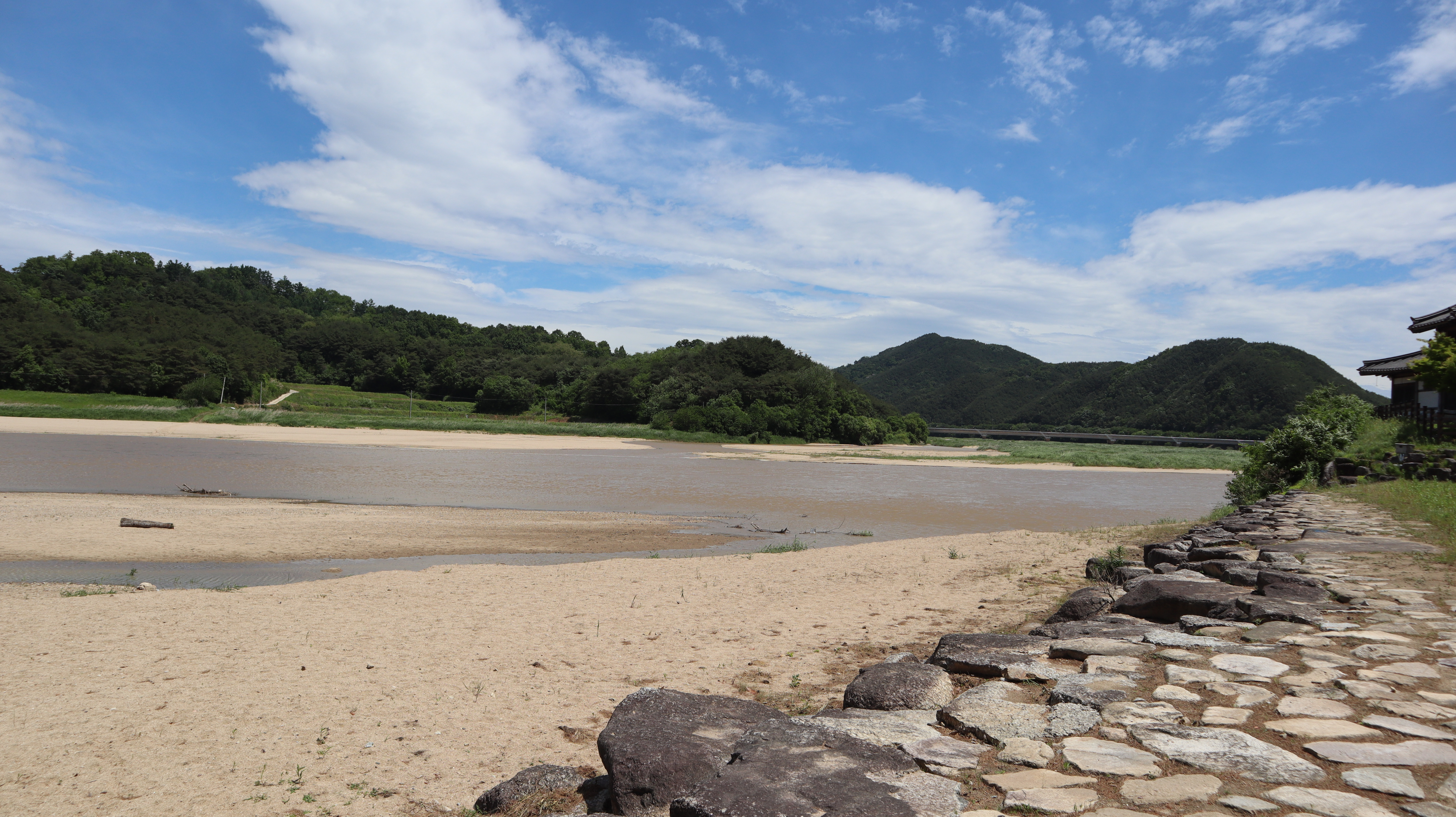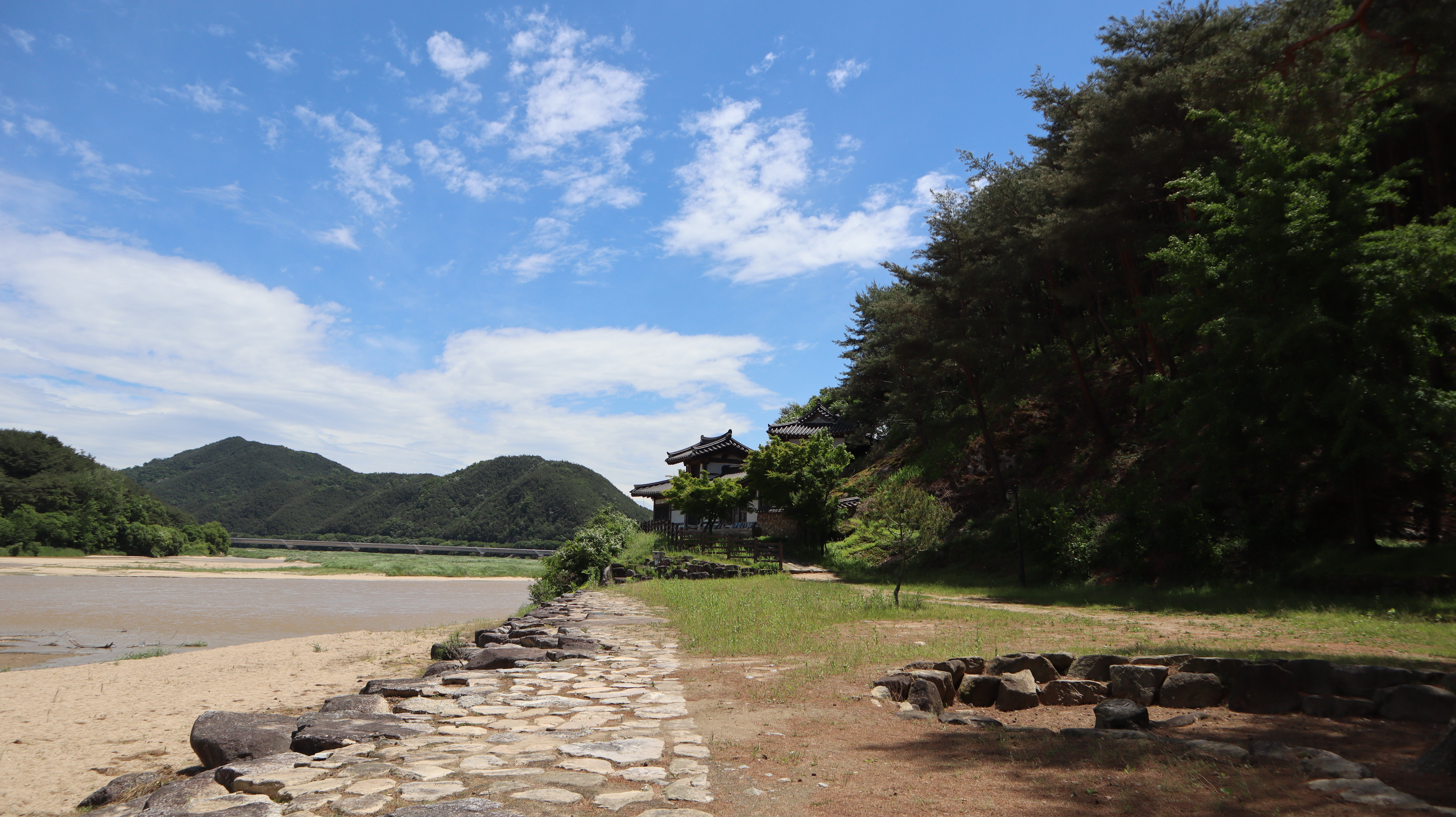선몽대 앞에는 얕은 강이 있는데 종종 여기 강 주변에서 모래놀이나 물가를 이용하는 가족분들도 종종 볼 수 있습니다.