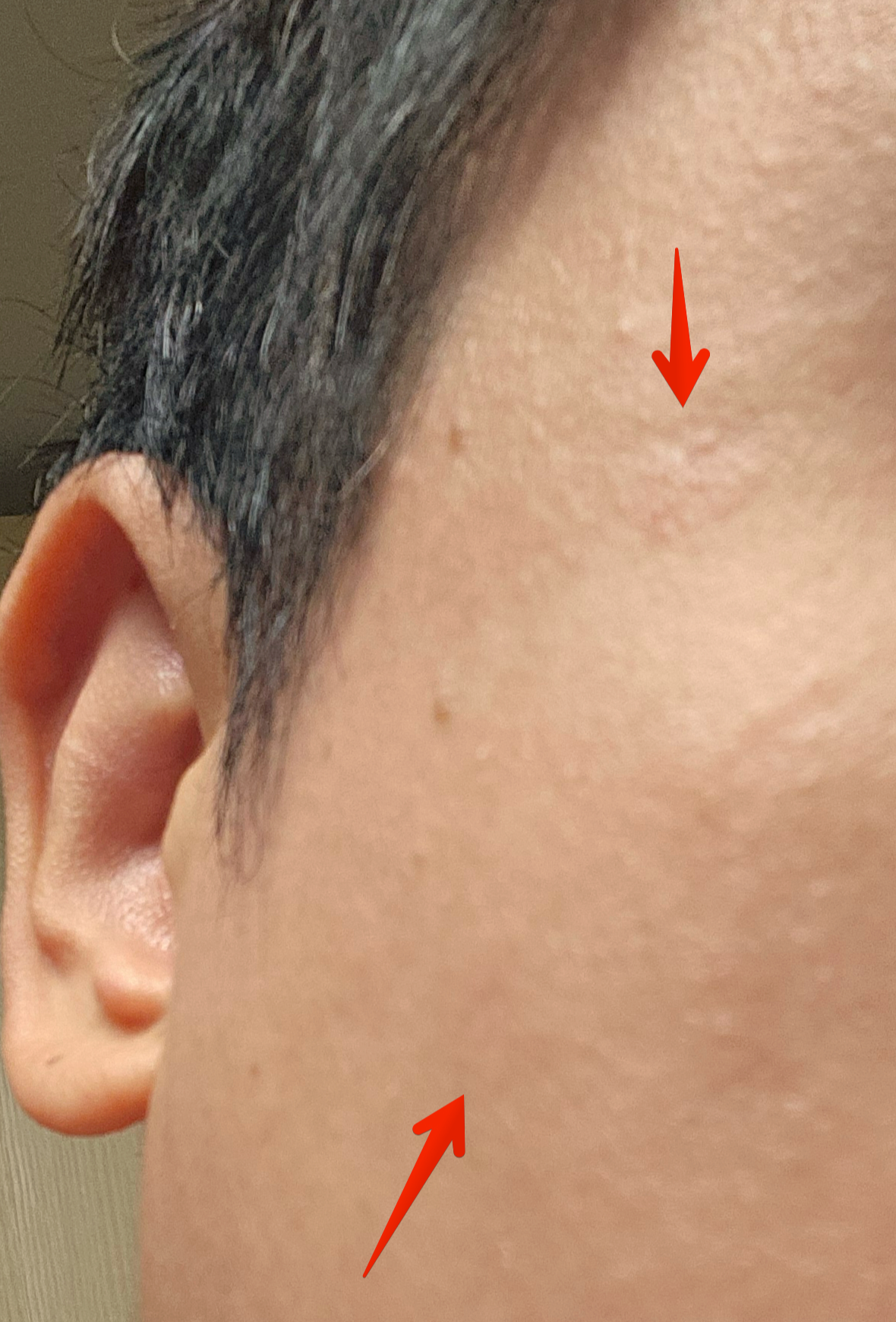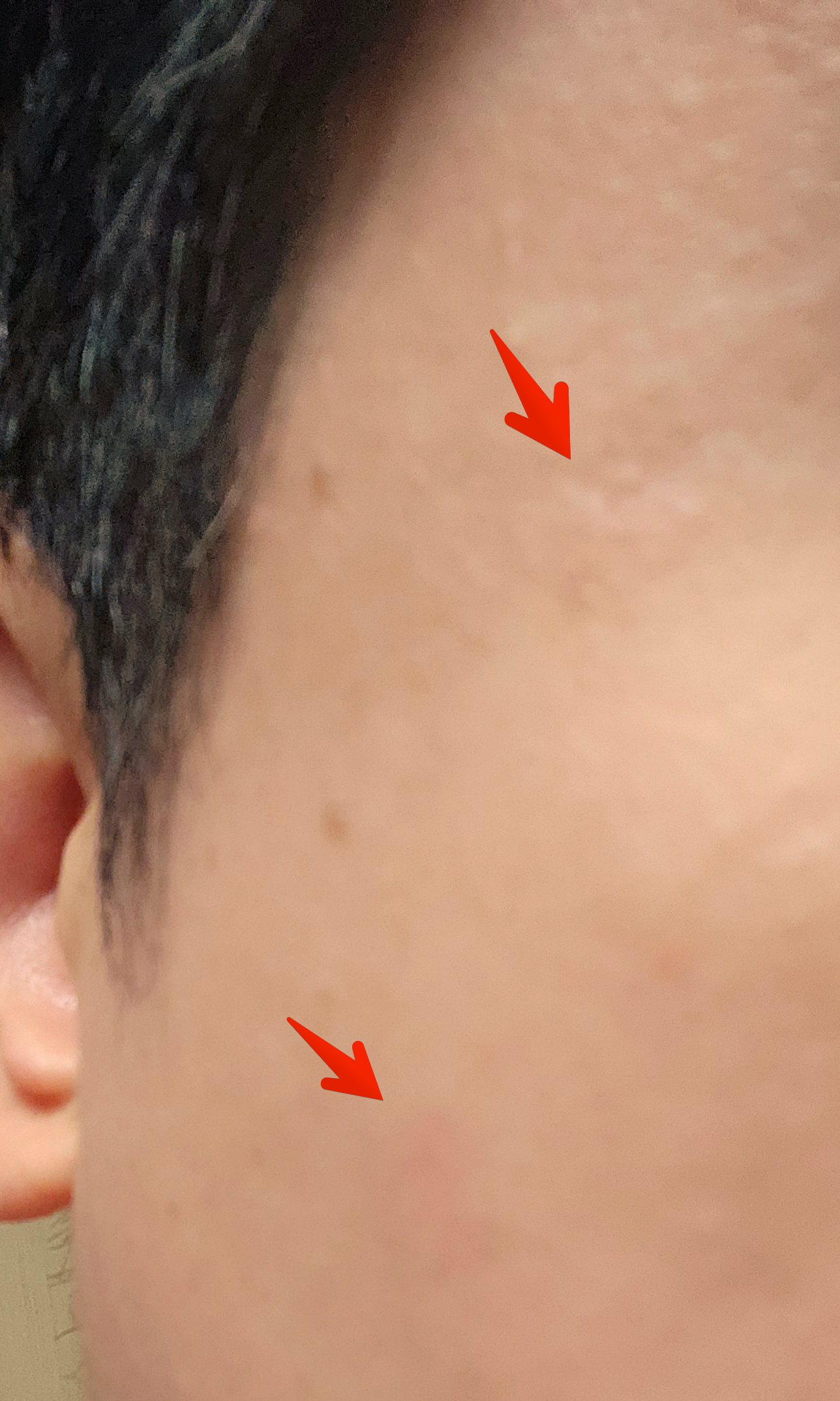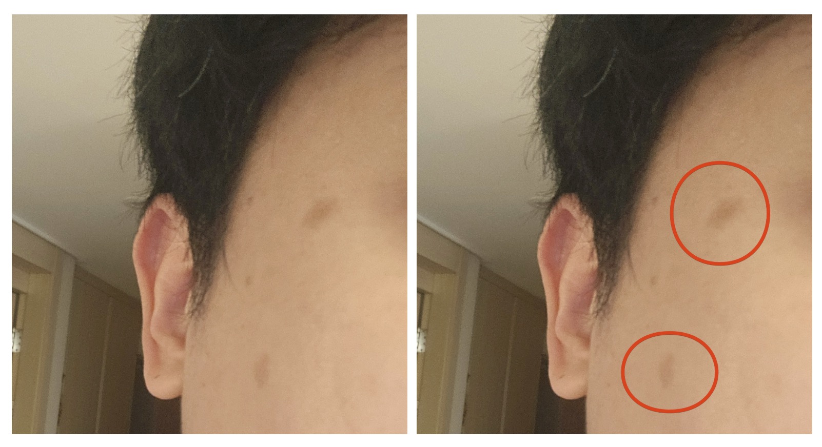 실제로는 위 사진에 가깝게 자국이 꽤 오래도록 남아있더라고요. 1월에 레이저 받고 2월... 3월 지나면서 일하는 곳도 많고 출장도 많고 비즈니스 미팅도 많아서 많은분들을 만나야하는 입장이었는데 아무래도 레이저 받은 자국이 선명하게 보이기도 하고, 씻고 거울 볼 때 마다도 해당 자국이 보여가지고 조금 염려스럽긴 했습니다.
