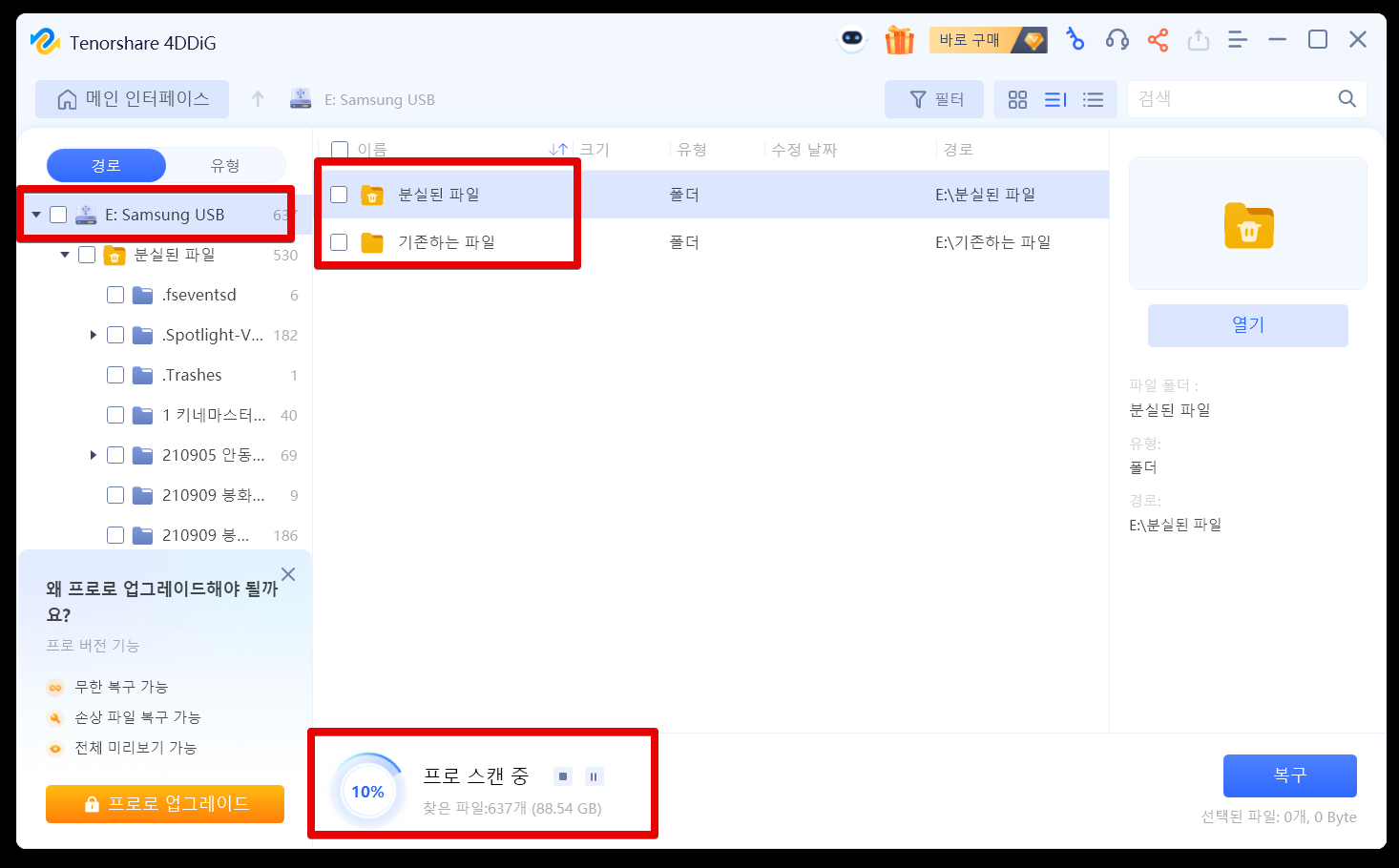2GB만큼 파일을 모두 복구하게 되면 이제부터는 프로버전으로 유료 결제가 필요합니다.