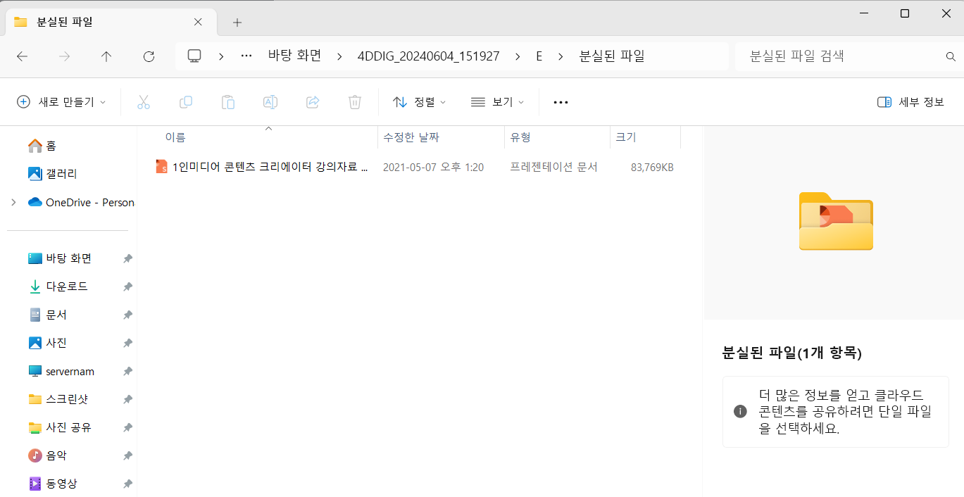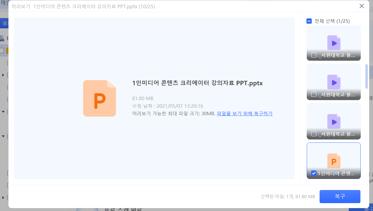 PPT 같은 문서 파일의 경우에도 문제없이 잘 복구되었고요.
