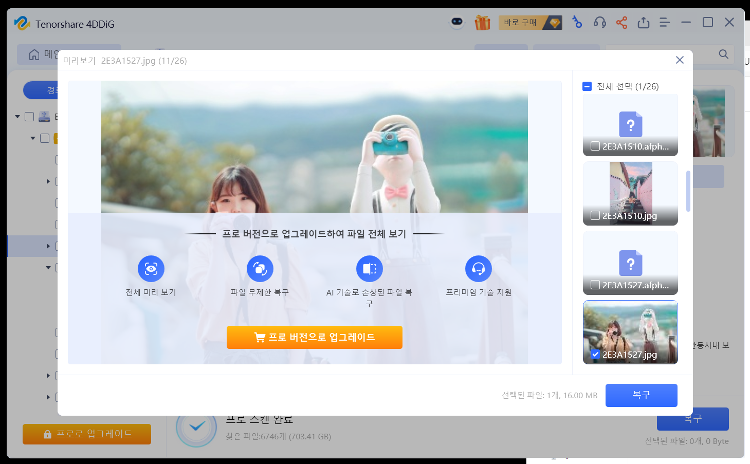 사진의 경우에도 문제없이 고화질로 복구가 잘 되었고요.
