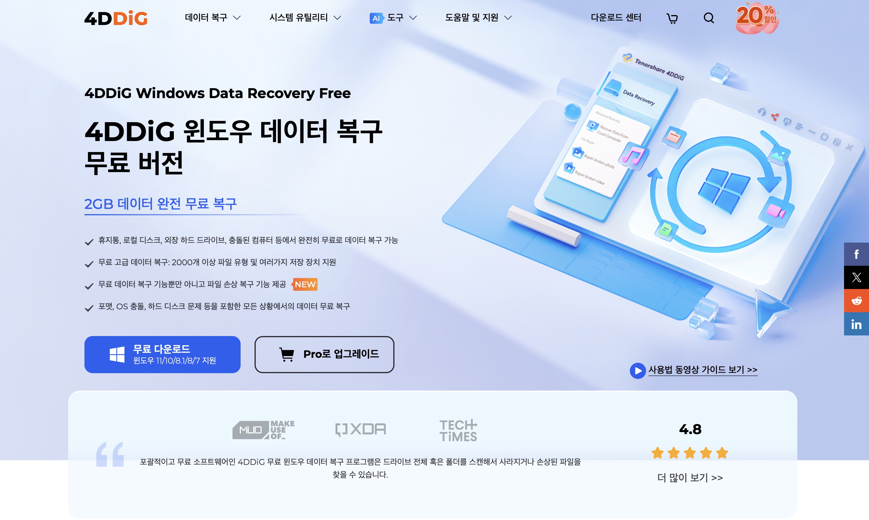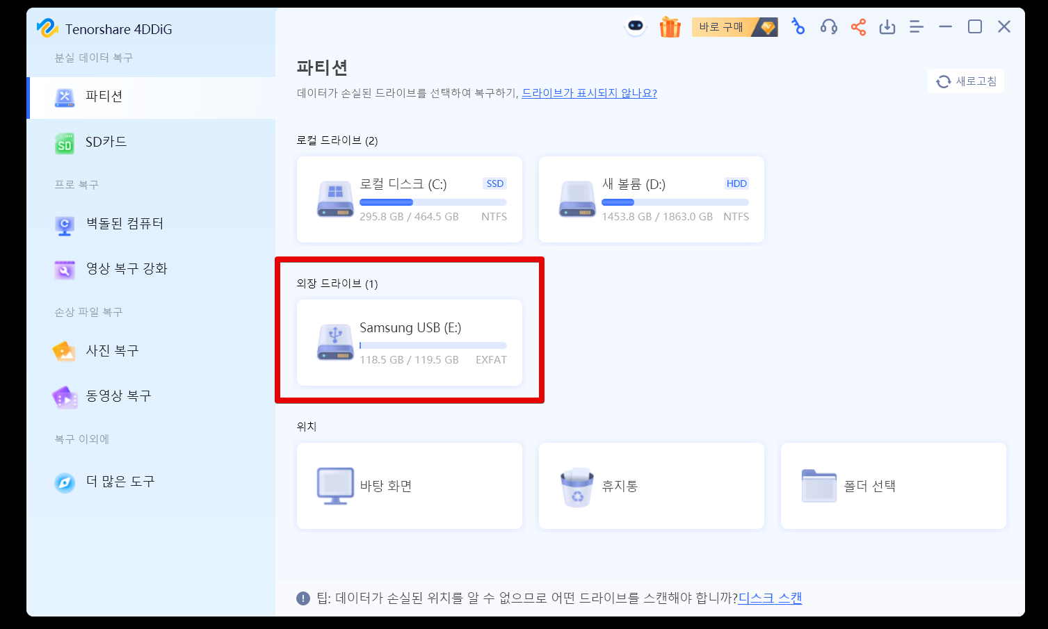 [공식] Tenorshare 4DDiG Windows 무료 데이터 복구 프로그램