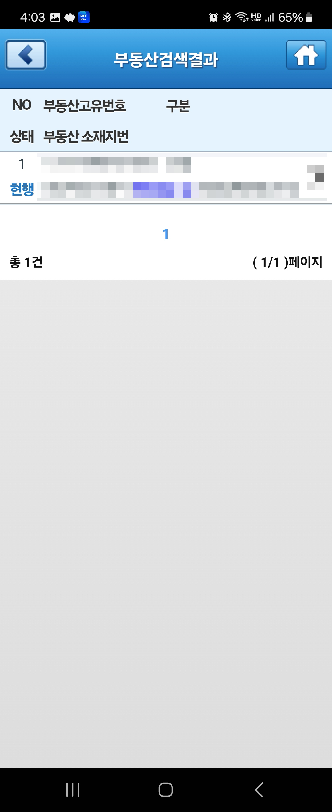 결제 완료 후 등기부등본 열람 가능합니다. 열람의 경우 1시간동안 무제한 열람이 가능하다고 합니다.