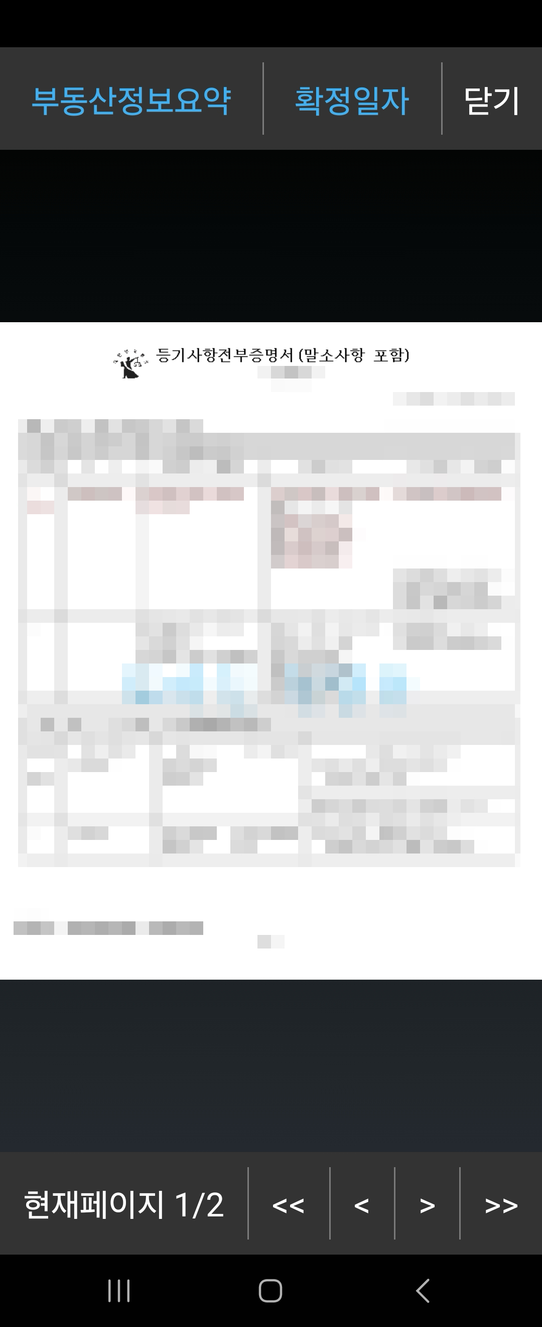 이런식으로 모바일 열람용 등기부등본이 나타납니다. 여기에서 원하는 정보를 확인하시면 되겠습니다. 모바일 열람용 등기부등본에는 '모바일 열람용'이라는 파란색 글자가 워터마크처럼 들어가 있으니 참고해주세요.