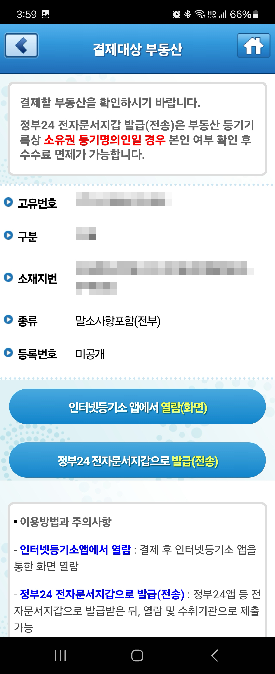 그리고 이번에 알았는데 소유권 등기명의인일 경우에는 본인 확인을 하게되면 수수료 면제가 된다고 합니다.