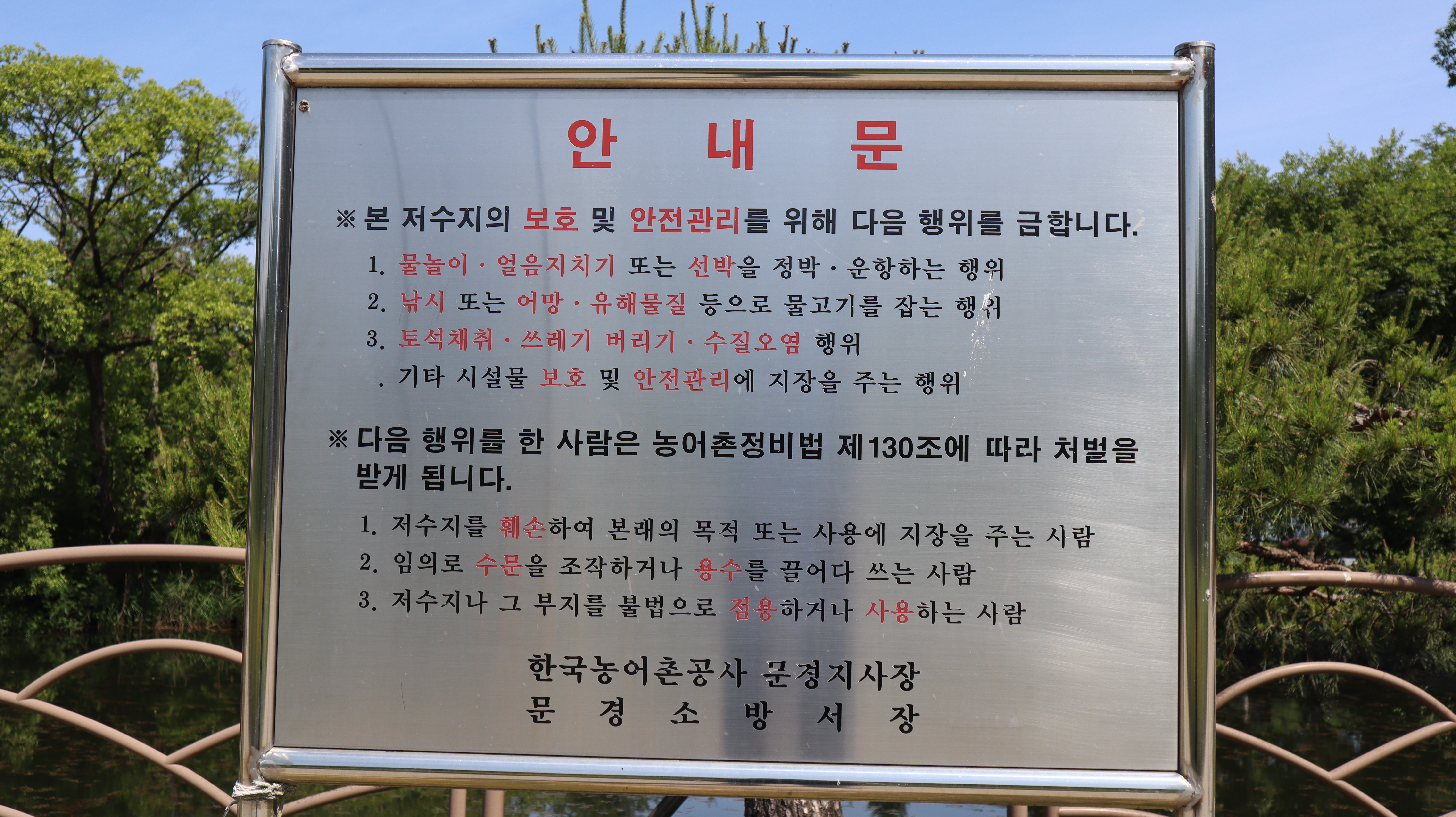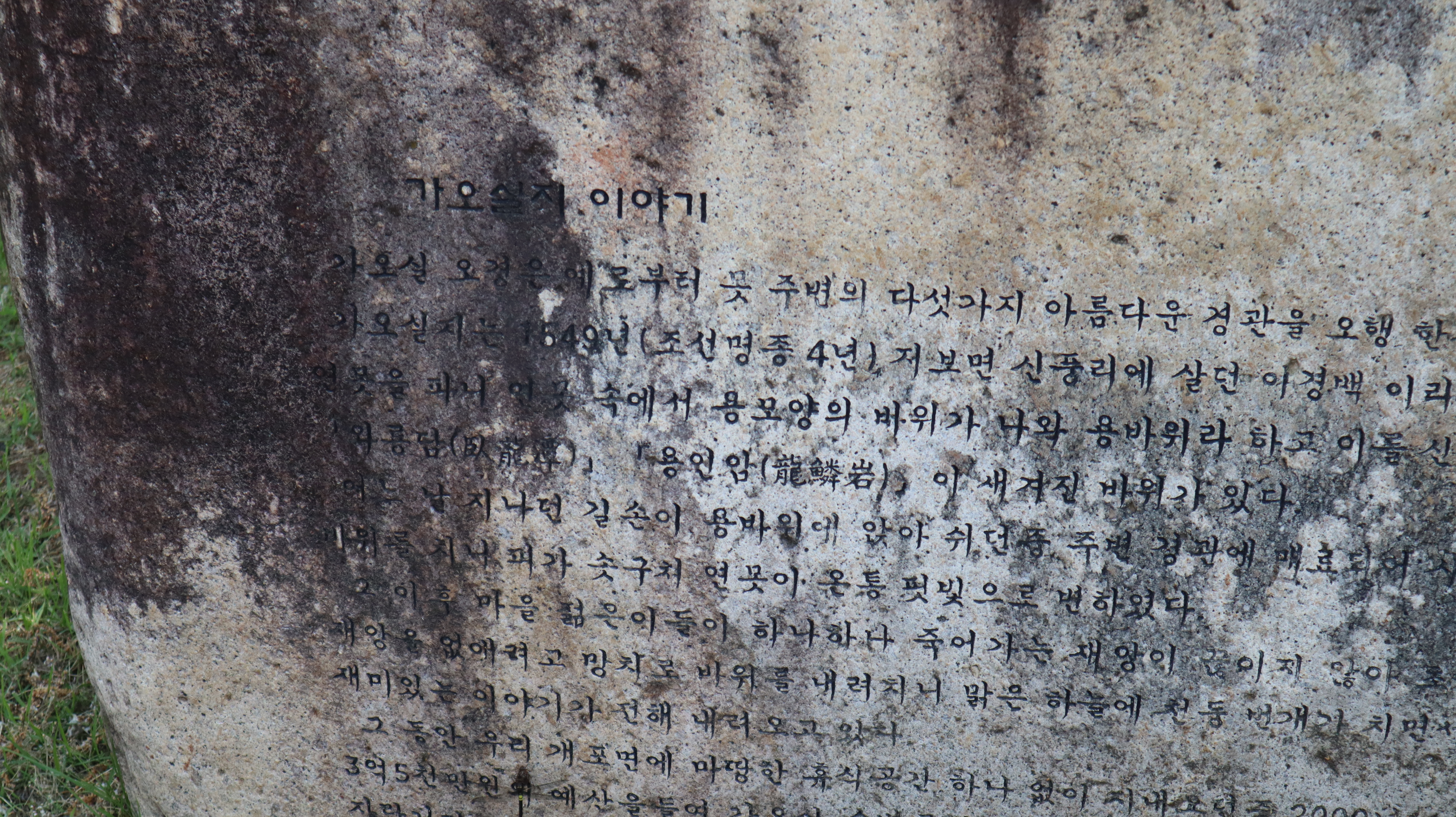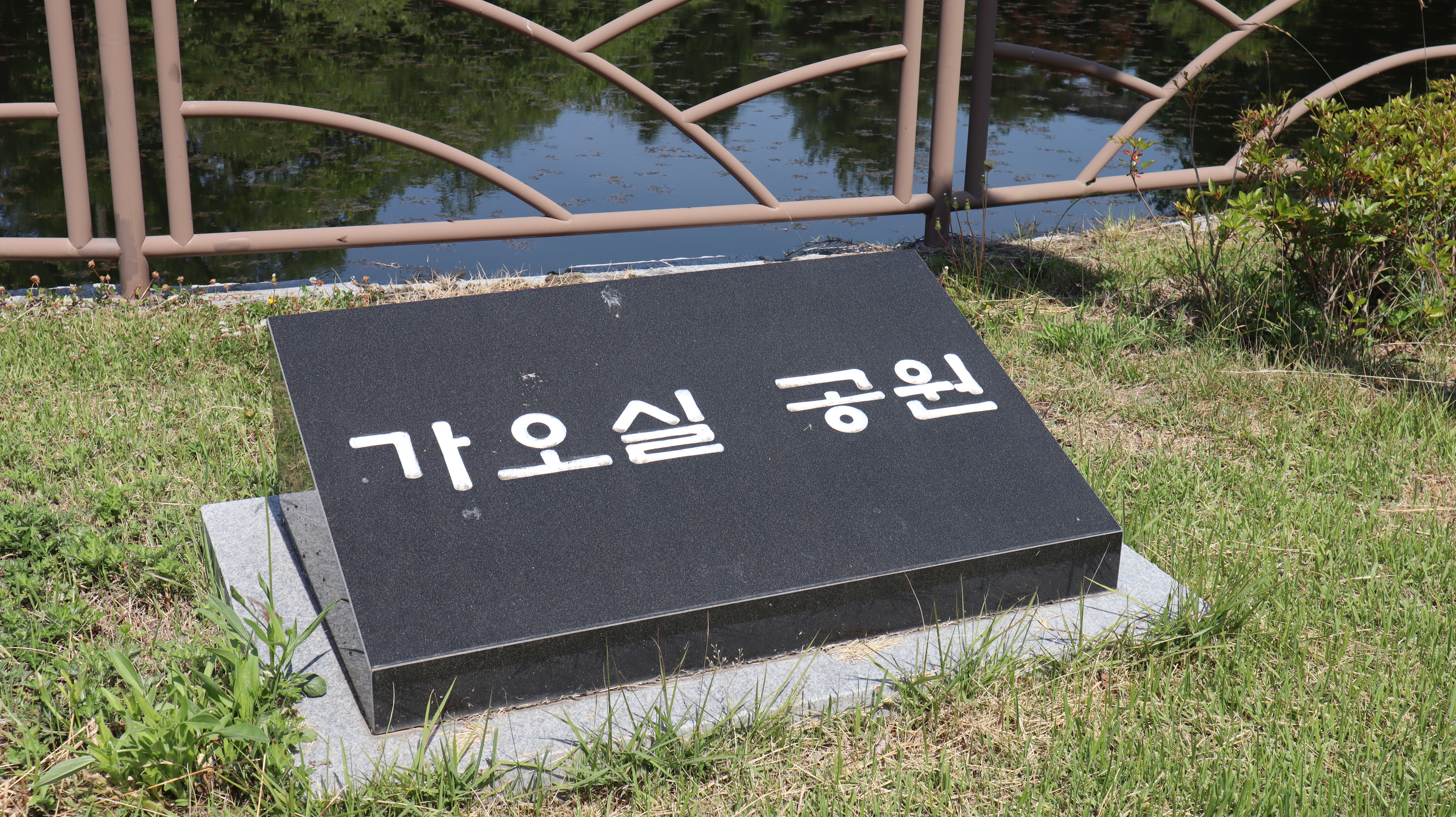 정면쪽에 가오저수지라는 이름과 가오실 공원 이라는 이름, 그리고 안내문 등이 있으므로 참고해주세요.