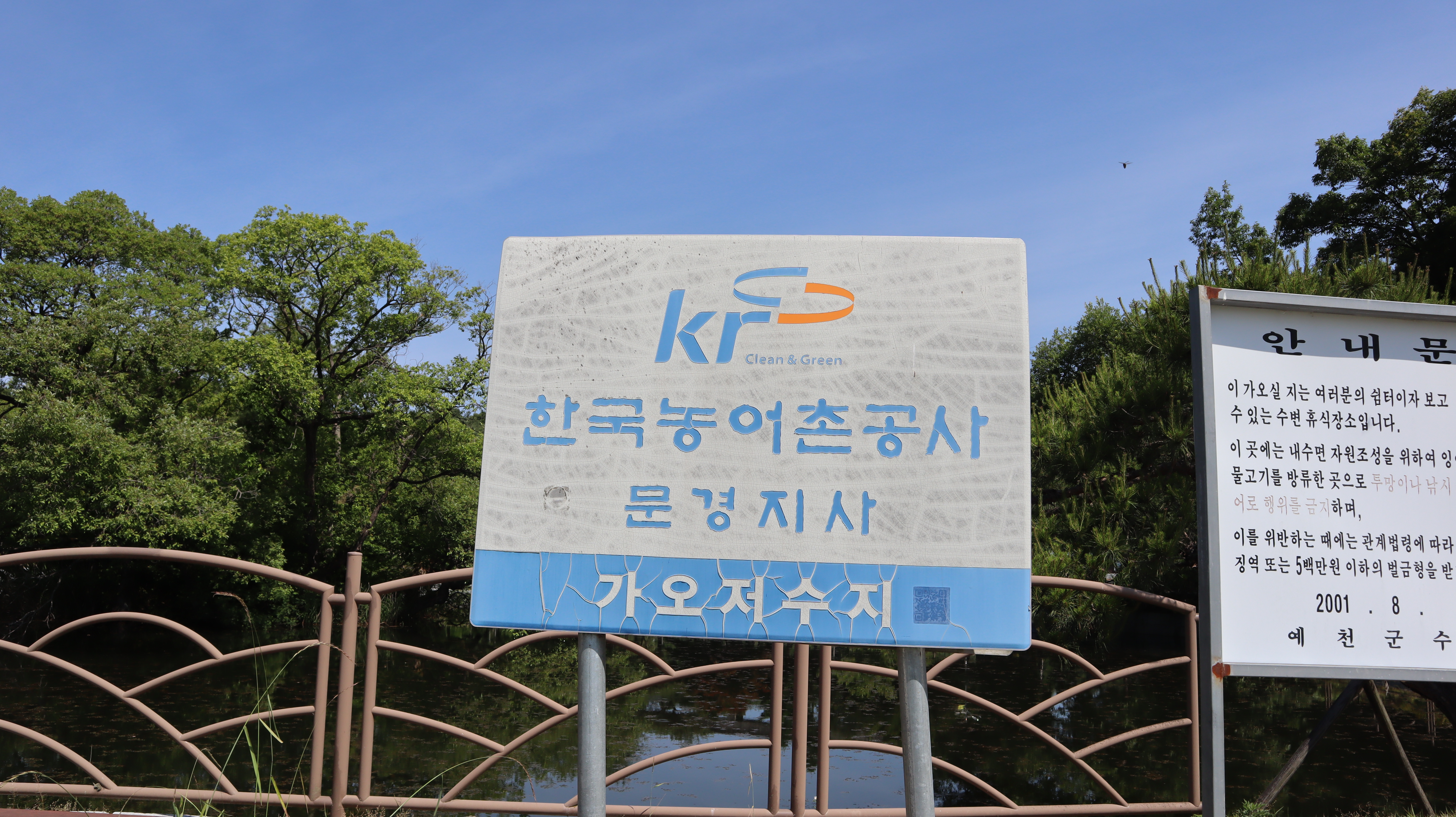 정면쪽에 가오저수지라는 이름과 가오실 공원 이라는 이름, 그리고 안내문 등이 있으므로 참고해주세요.