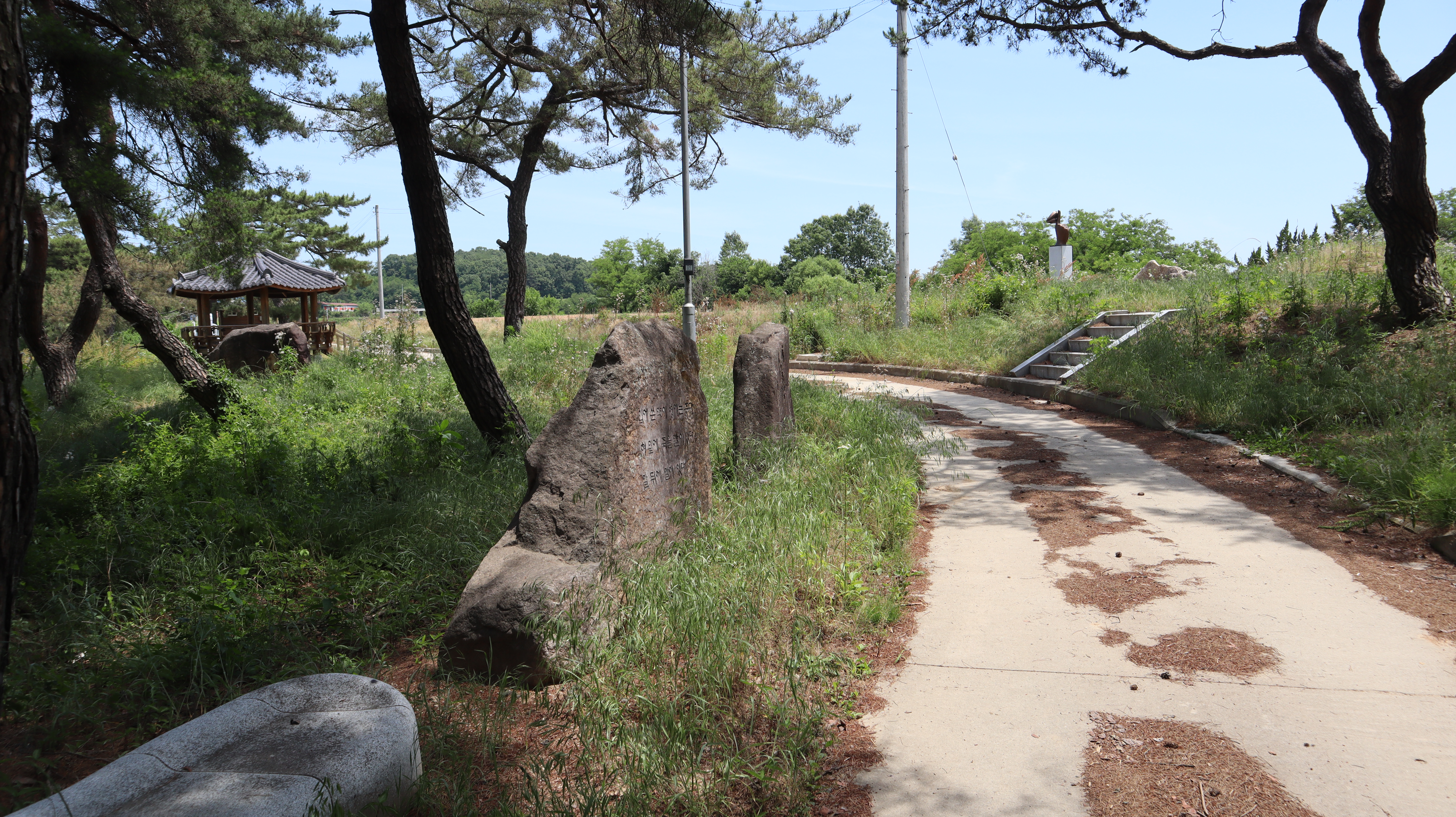 말무덤으로 올라가는 길은 야트막한 오르막을 올라가야합니다. 생각보다 말무덤이 높은 곳에 자리잡고 있어서 풍경이 수려하며 올라가는 길 또한 아름다운 소나무들로 가득해서 풍경이 아름다운 편입니다. 사진찍기에도 좋아보이고요.