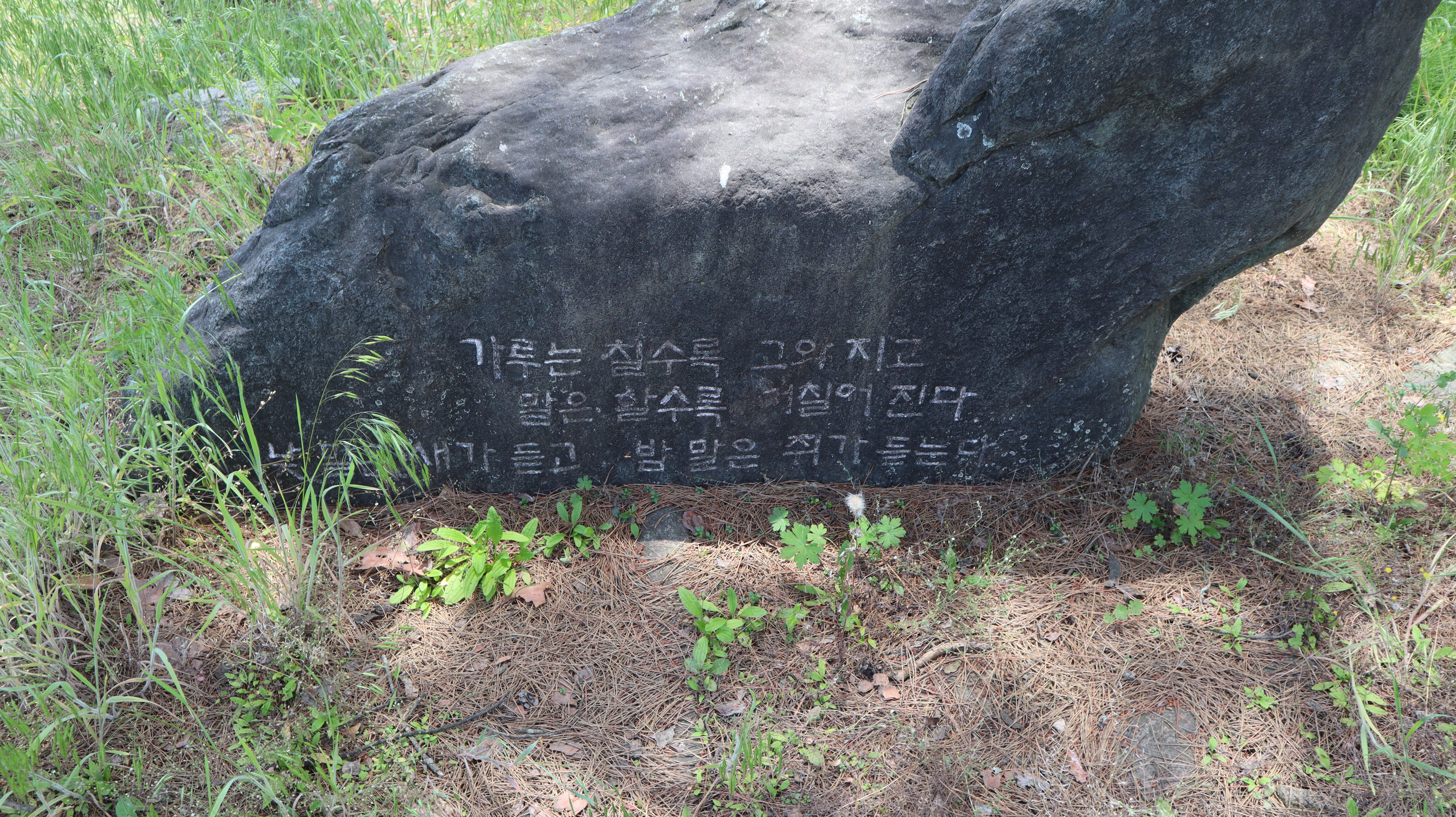 정상부 쪽에는 작은 정자 하나가 있는데 여기 안에도 글귀 3개가 있습니다.