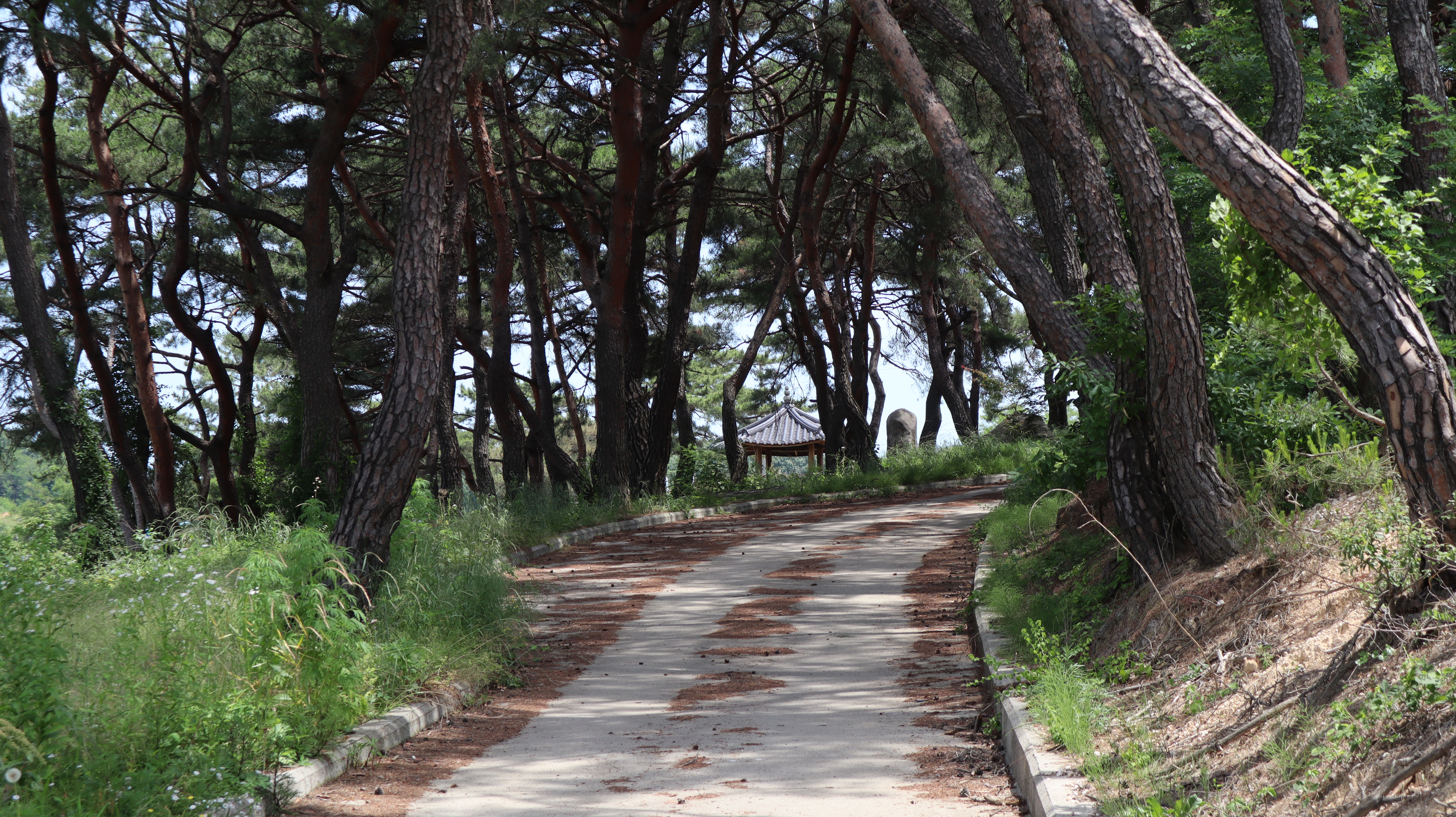 말무덤으로 올라가는 길은 야트막한 오르막을 올라가야합니다. 생각보다 말무덤이 높은 곳에 자리잡고 있어서 풍경이 수려하며 올라가는 길 또한 아름다운 소나무들로 가득해서 풍경이 아름다운 편입니다. 사진찍기에도 좋아보이고요.