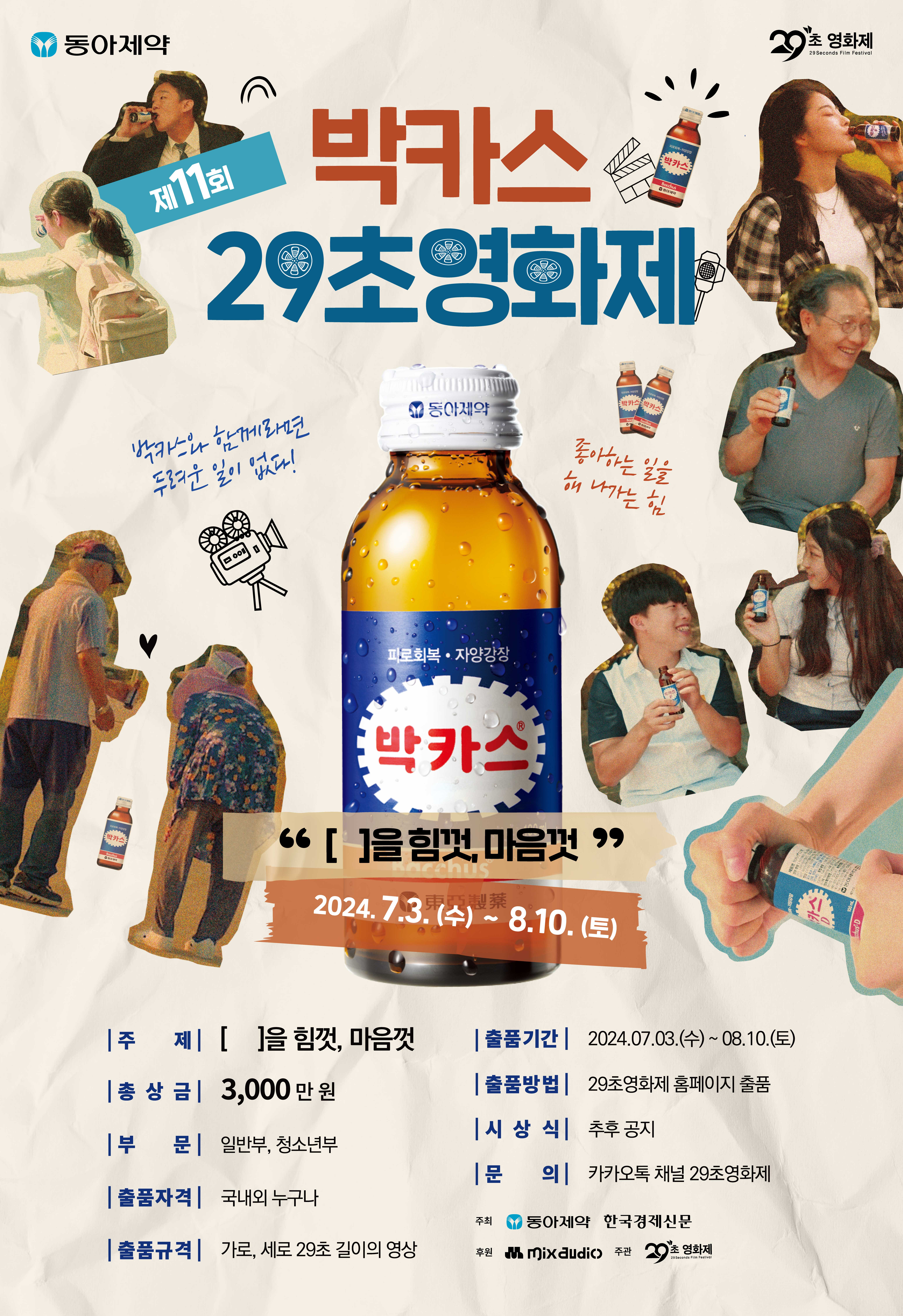 29초영화제 명예홍보대사 남시언입니다. 2024년 세번째 29초영화제, 제11회 박카스 29초영화제가 개최됩니다.