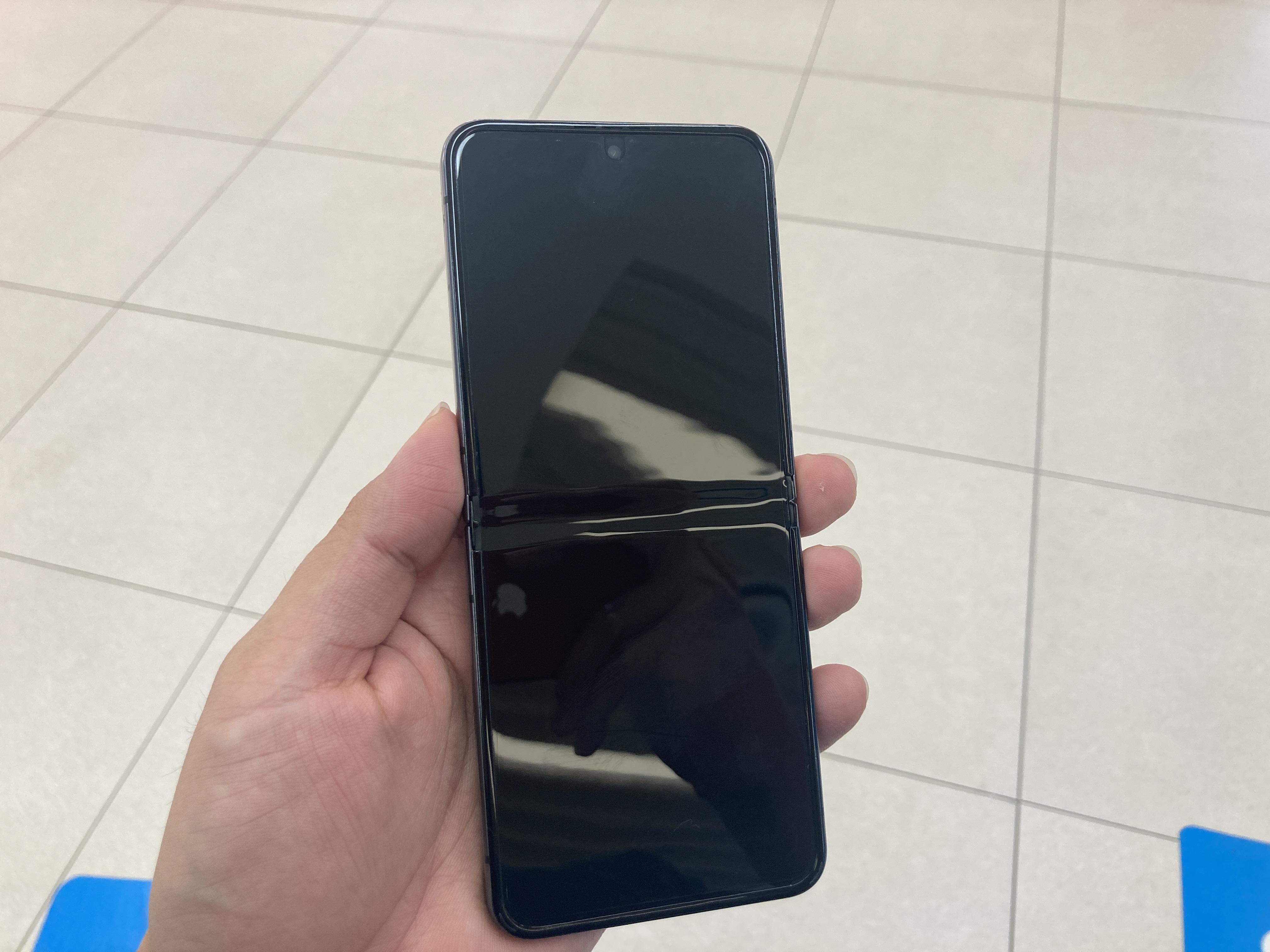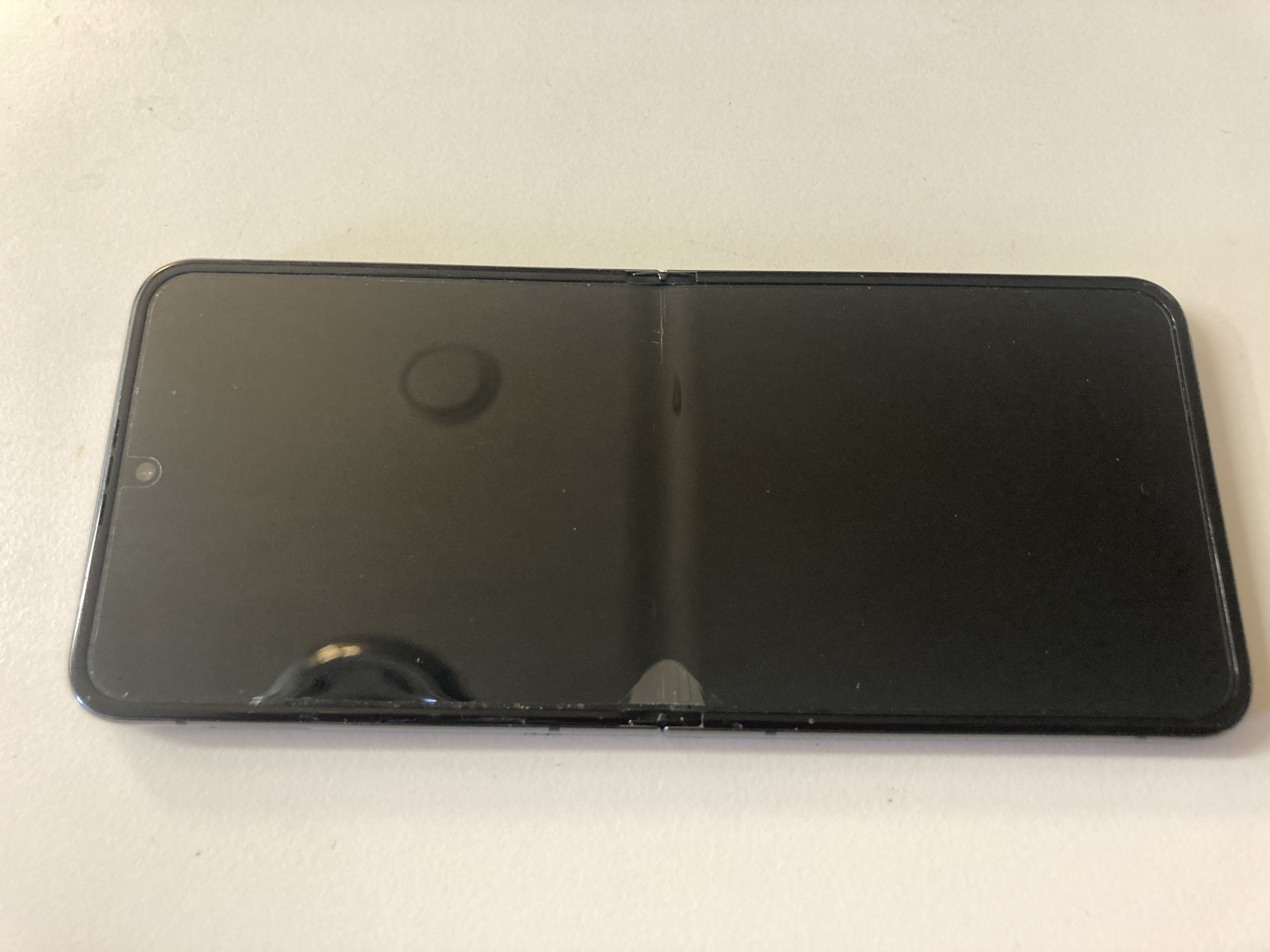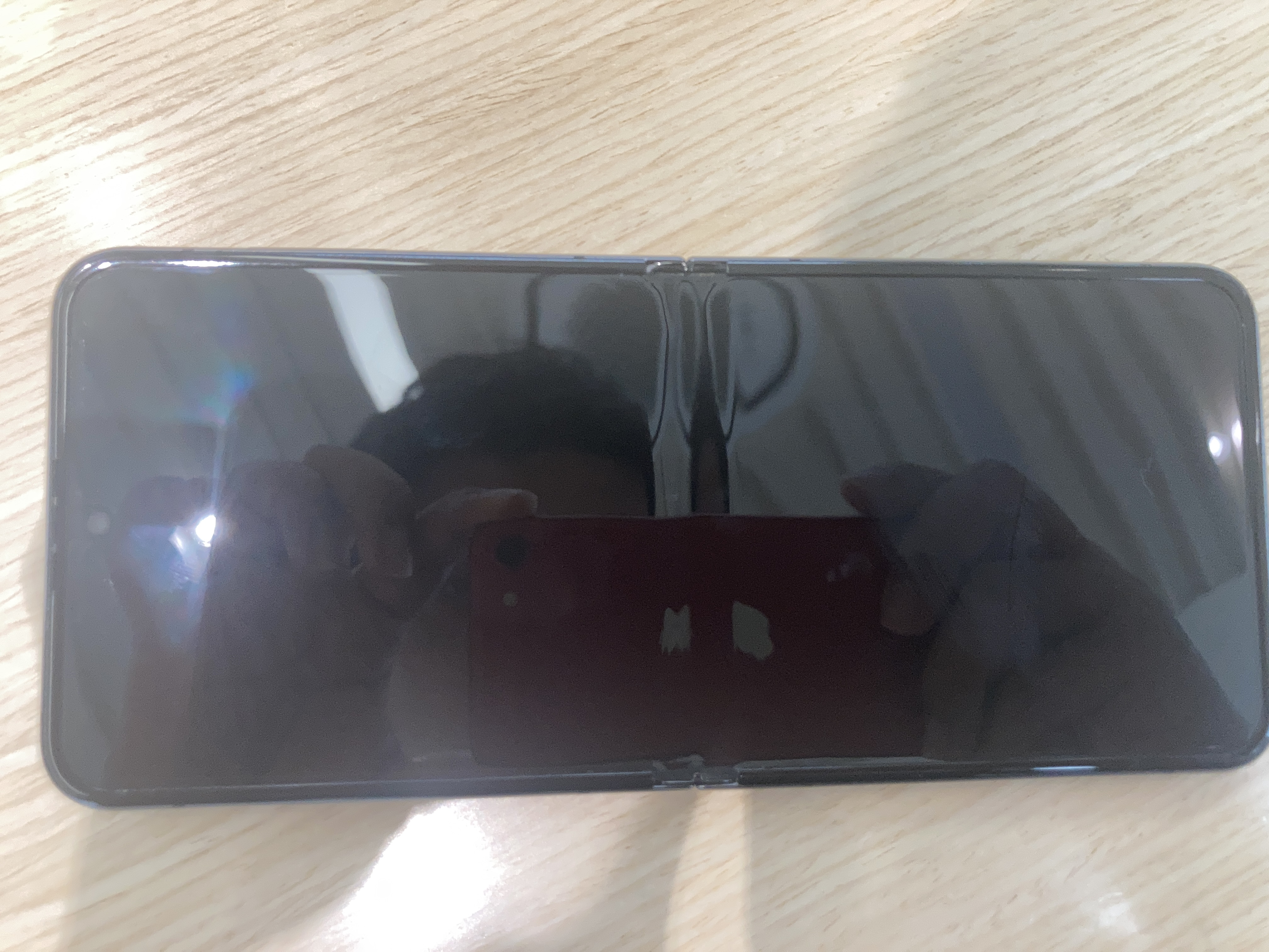 그런데 접는폰 특성상 1년 정도 사용하면서 접었다가 폈다가 막 하기도 하고, 평소에 그냥 둘 땐 주로 접어서 두다보니까 액정 보호필름 가운데 부분과 양 끝쪽 부분이 조금 들뜨고 약간 공백이 생겨가지고 보기가 좀 안좋아지게 됐습니다. 그래서 정품 보호필름 1회 무료부착 서비스를 이용해서 서비스 받아보았습니다.
