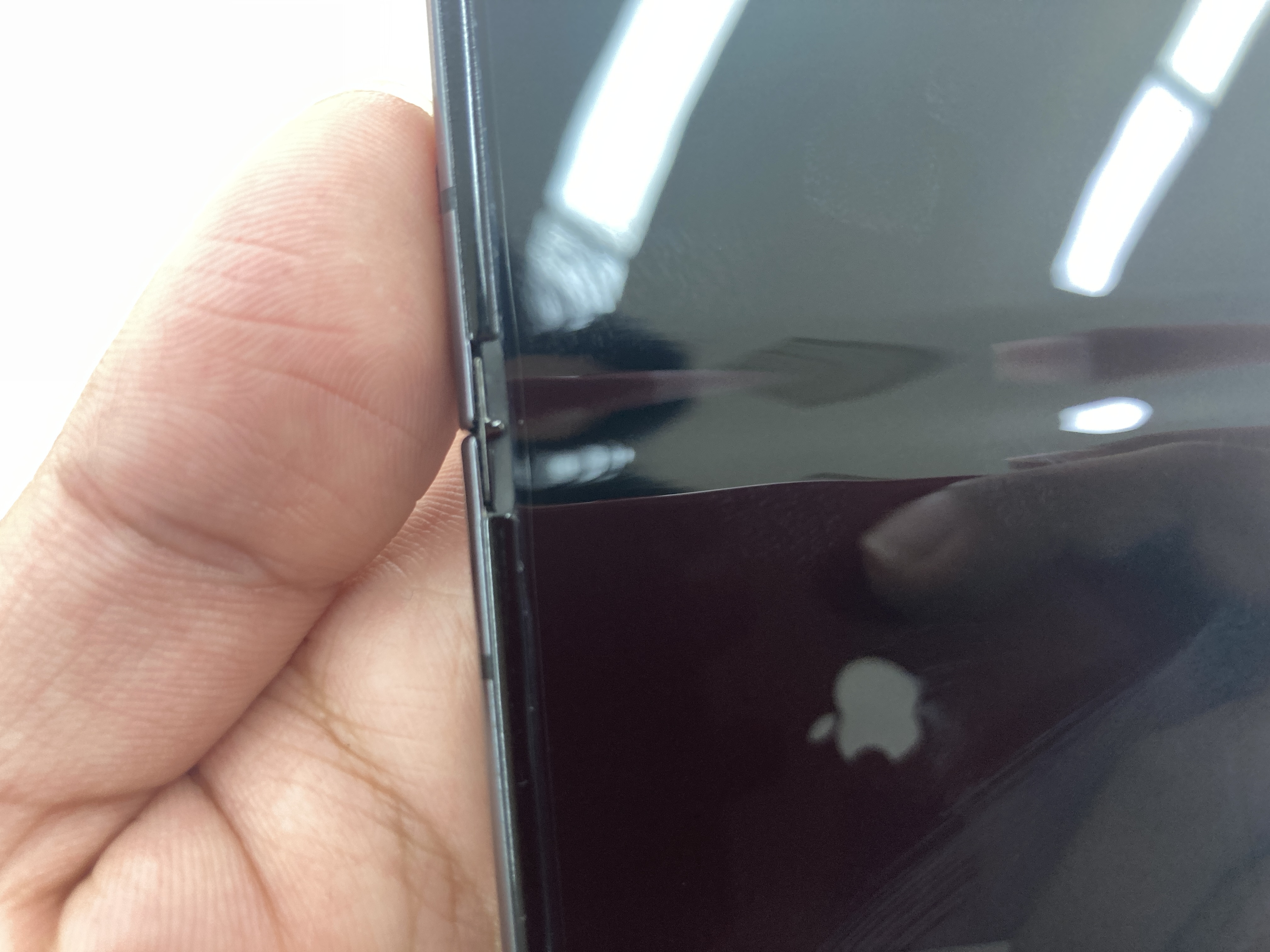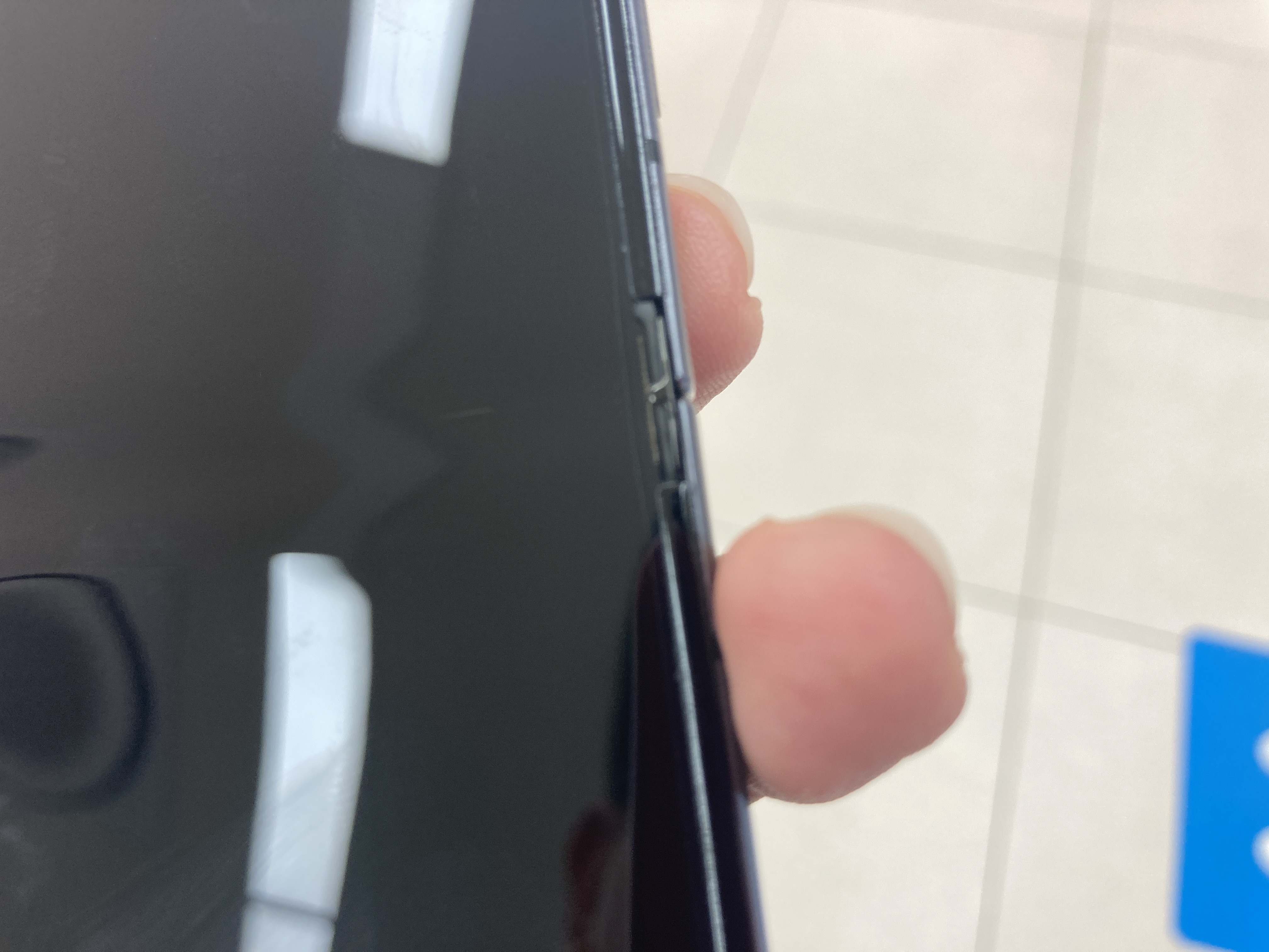 액정필름 교환하기 전 모습입니다. 다른 곳은 튼튼하게 잘 붙어있는데 접히는 곳 양끝쪽에 왼쪽 이미지처럼 공백이 생기거나 오른쪽 이미지처럼 약간 찢어진(?)듯한 느낌이 나는것처럼 필름이 조금 손상되더라고요.