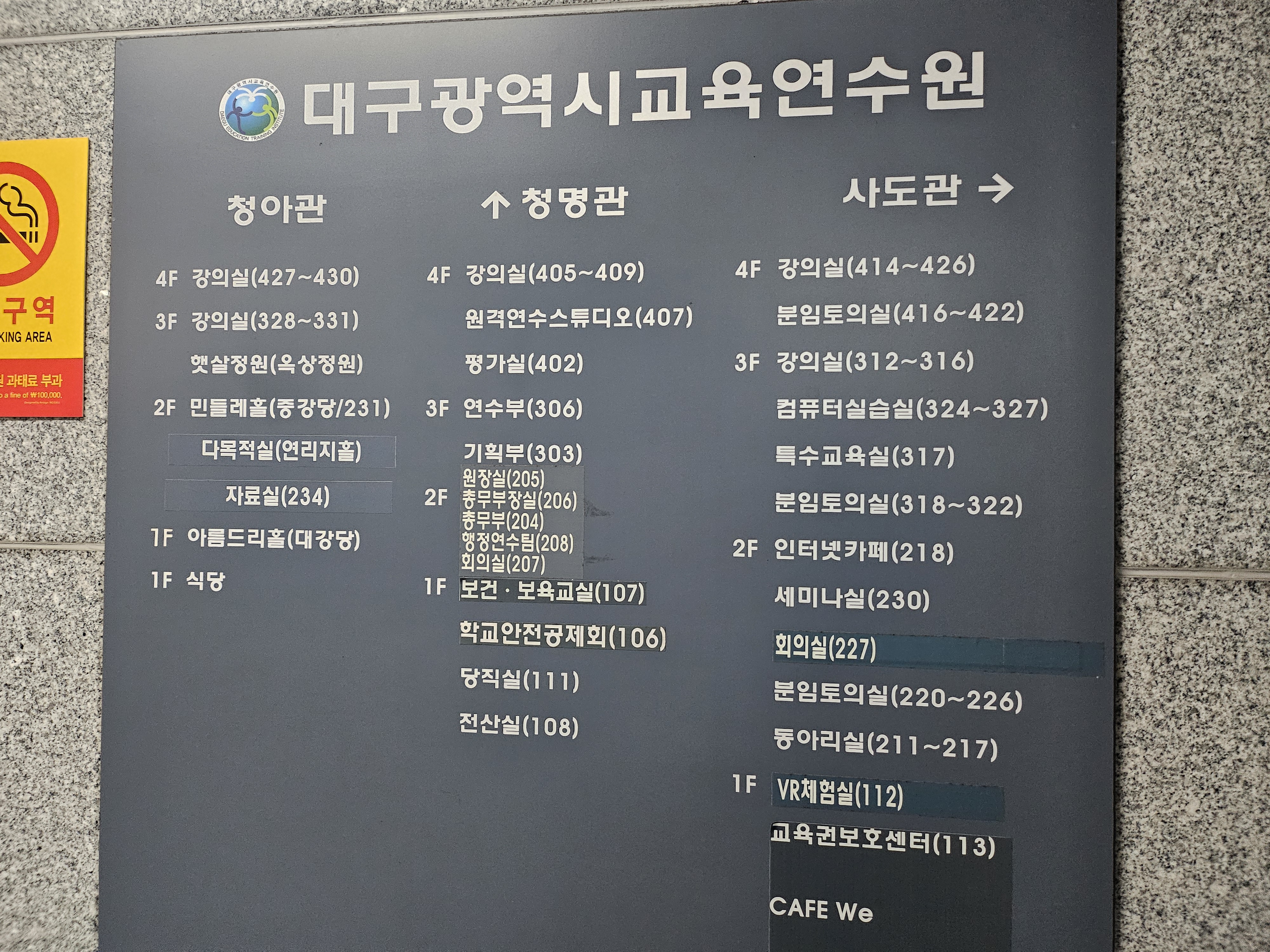 대구광역시 교육연수원은 기억이 가물가물한데 아마 처음 가본 곳 같습니다. 주차장이 넓은 편이고 유료주차장으로 운영되며 강사분들의 경우 강사카드에 차 번호를 넣으면 주차등록을 해주셔서 편리하게 이용할 수 있습니다.
