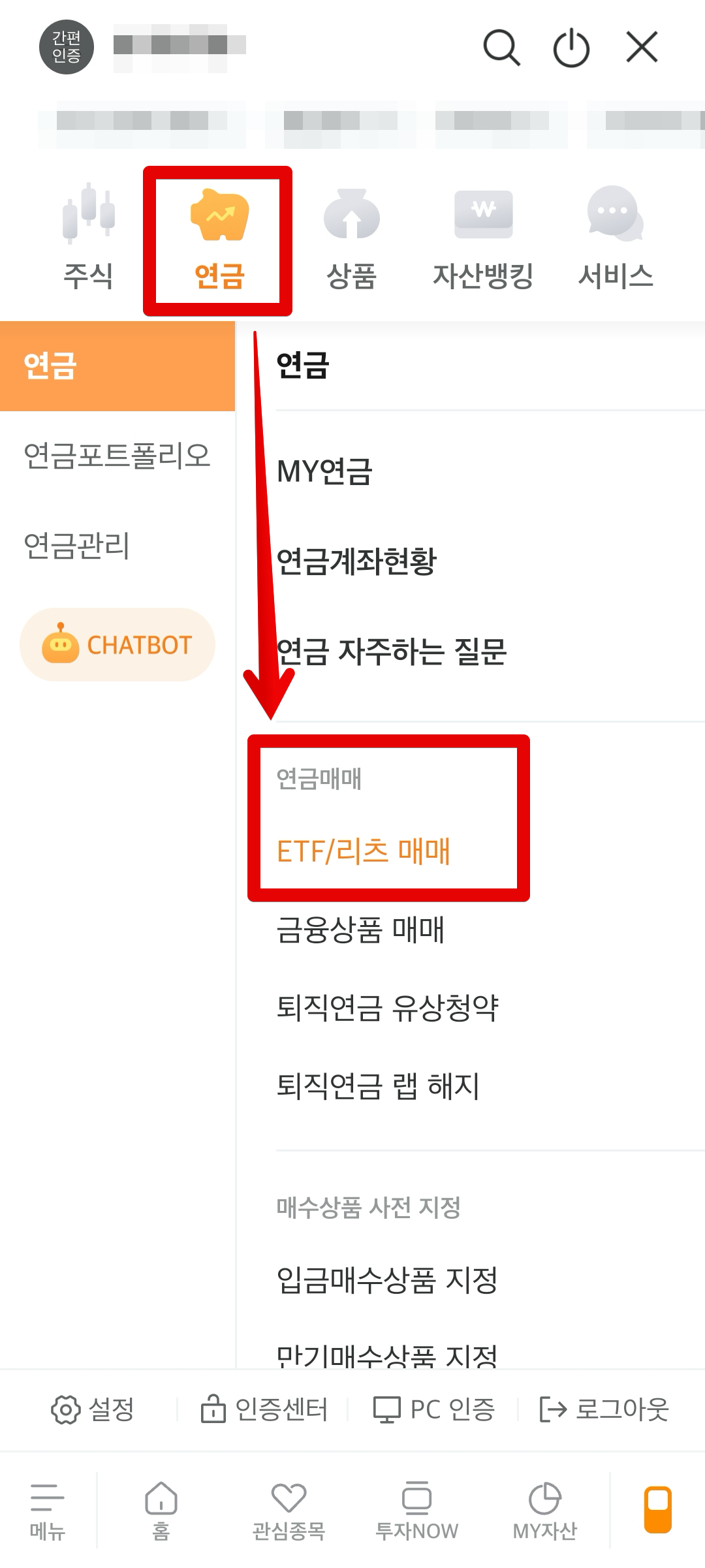 퇴직연금 IRP 계좌는 연금계좌이므로 일반적인 ETF 매수방법과 메뉴가 조금 다릅니다.