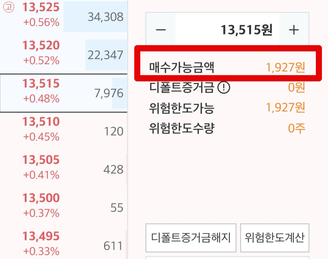 미래에셋증권 앱 활용 중에서 퇴직연금 IRP 계좌에서 한가지 아쉬운 부분은 예수금을 확인하는 기능이 안보인다는 점이었는데요. 제가 못찾는건지... 모르겠는데 퇴직연금 IRP 계좌에서는 예수금을 따로 확인하는 기능은 없는것 같더라고요. 그래서 예수금을 확인해보려면 상품 안에 들어가서 [매수가능금액]을 보고 예수금을 보면 확인이 가능했습니다.