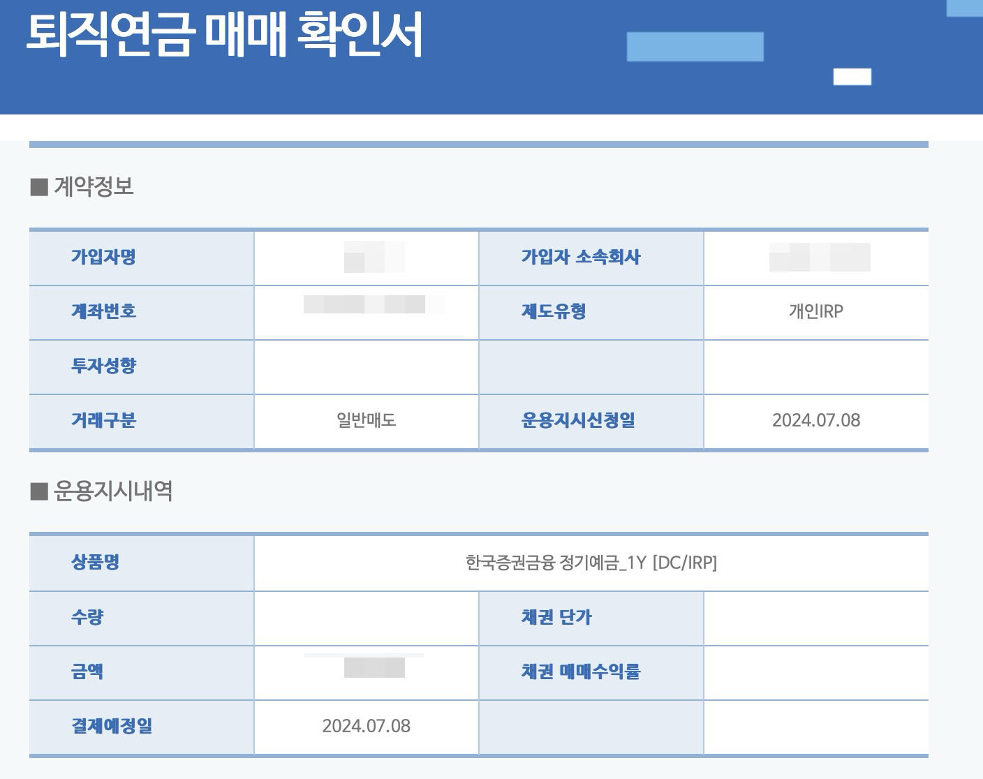 퇴직연금 IRP 계좌에서는 안전자산 30%룰이 있어서 공격적인 장기투자는 조금 어려운데요. 보통 펀드나 예금으로 많이들 운용하시는걸로 알고 있는데 지난번 블로그 포스팅에서처럼 저렴한 비용 + 장기투자 우상향 기대 + 많은 주식 비중을 가지고 있는 상품으로 장기투자해서 좀 더 높은 수익률을 기대해보기 위해서 IRP 계좌에서 안전자산 30%에 있던 예금을 모두 매도하고, TDF ETF 2050으로 투자 진행했습니다.