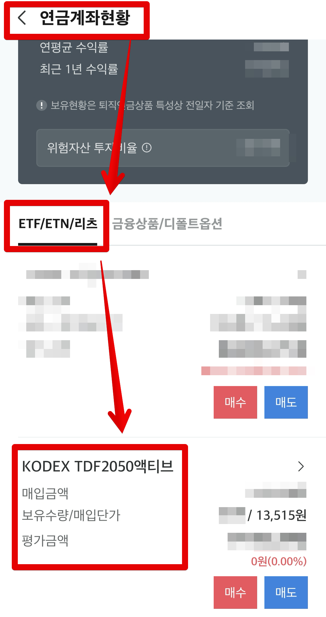 미래에셋증권 퇴직연금 IRP계좌에서 TDF ETF 2050 매수 방법