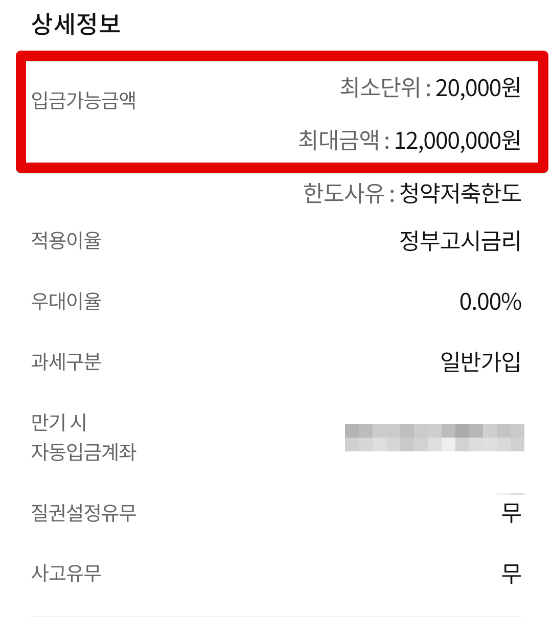 이렇게 돼 있어서 원하는 금액을 모두 채우고 1순위를 받은 후에는 납입중단을 하게 되었습니다.
