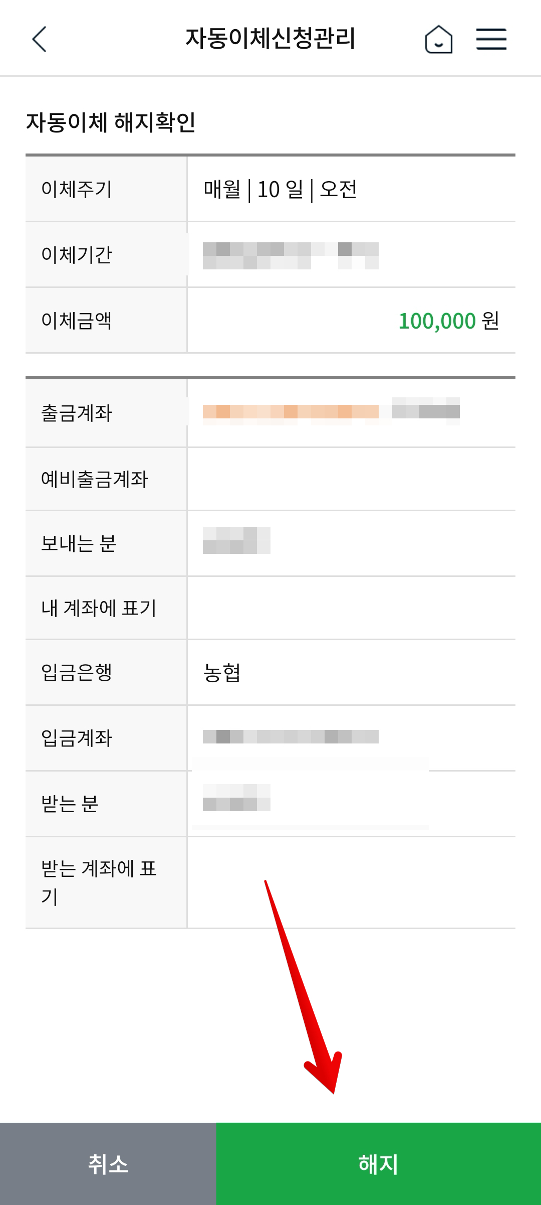 주택청약통장 납입중단(자동이체 해지) 방법 (NH농협 기준)