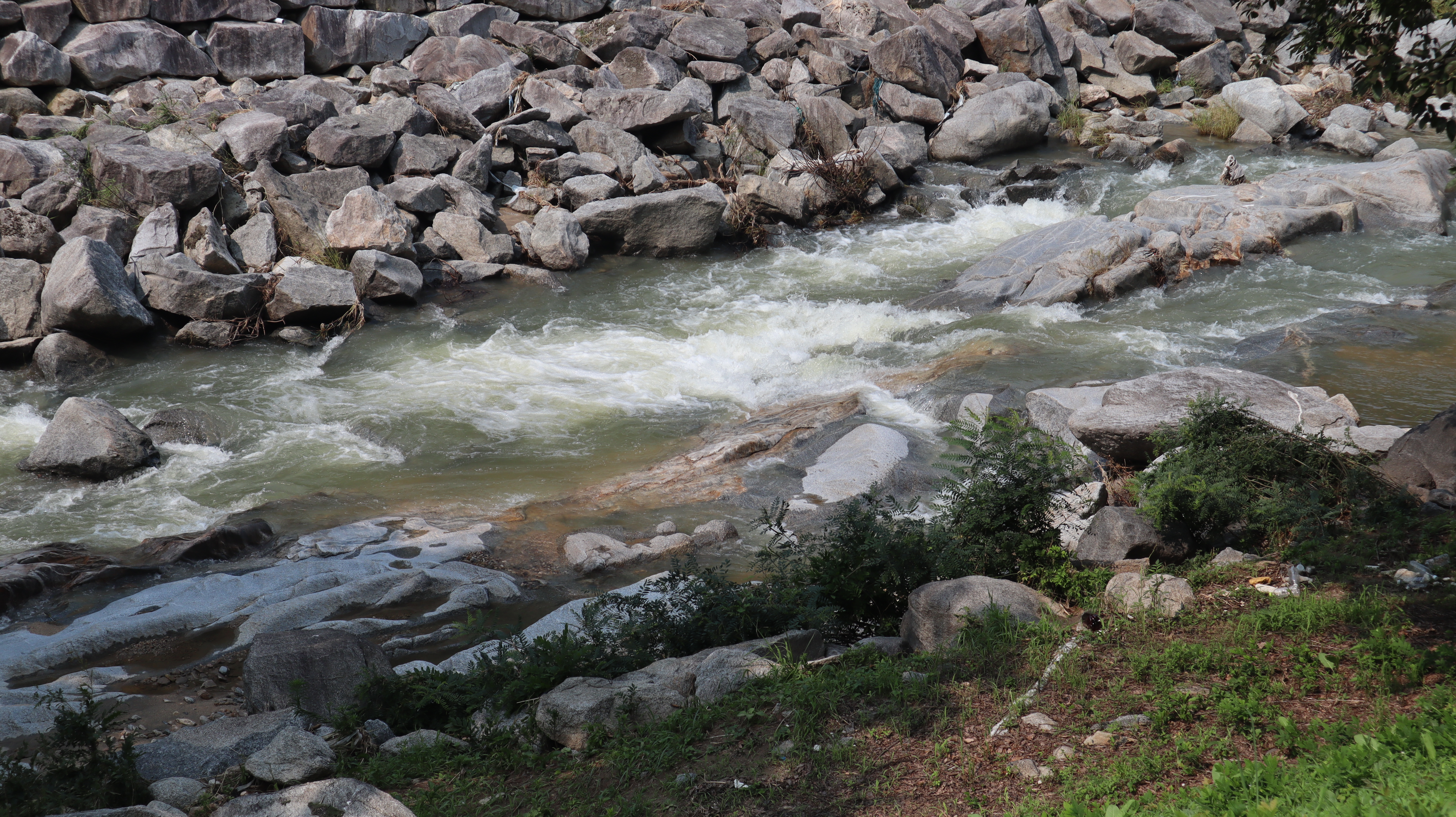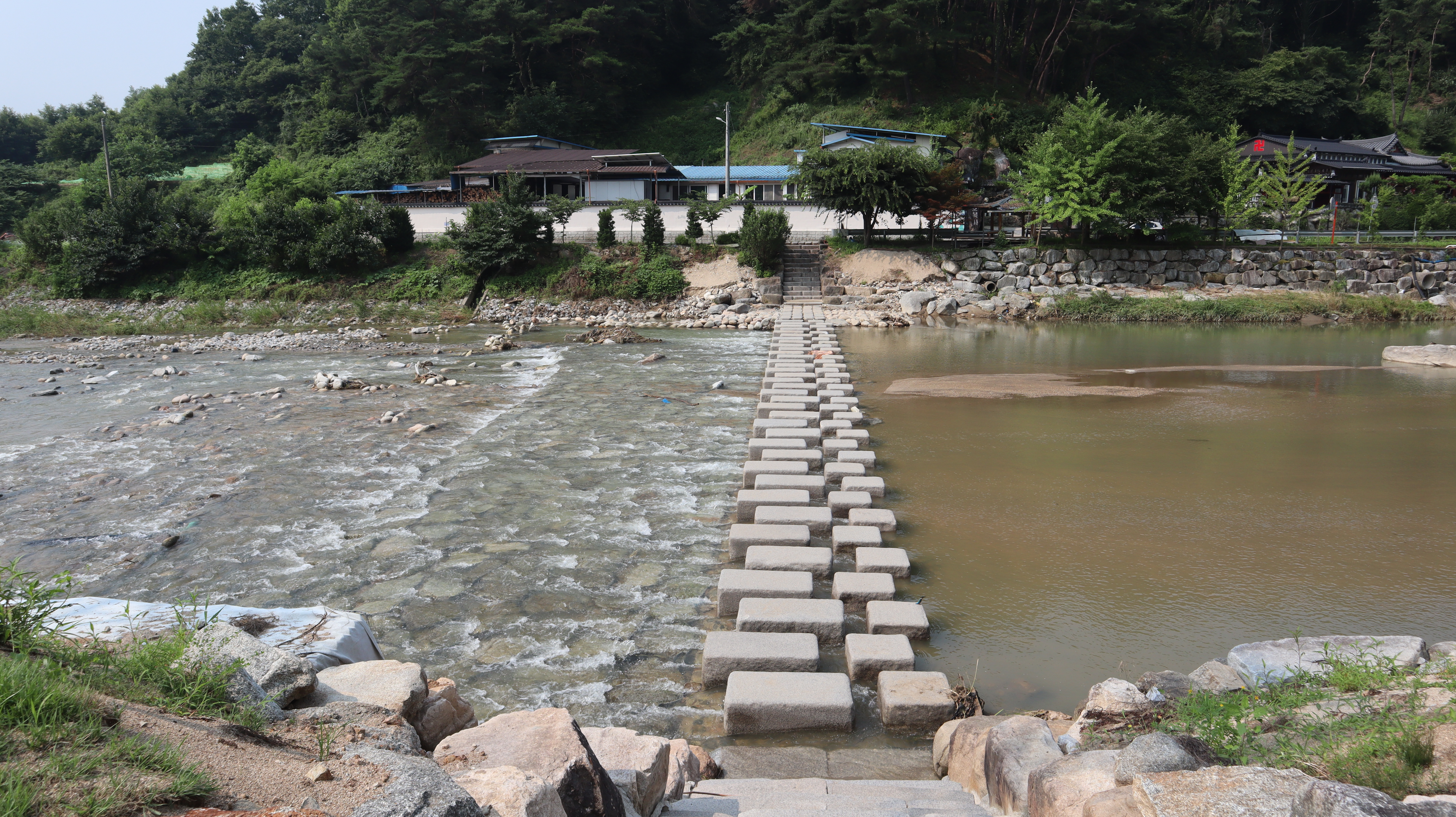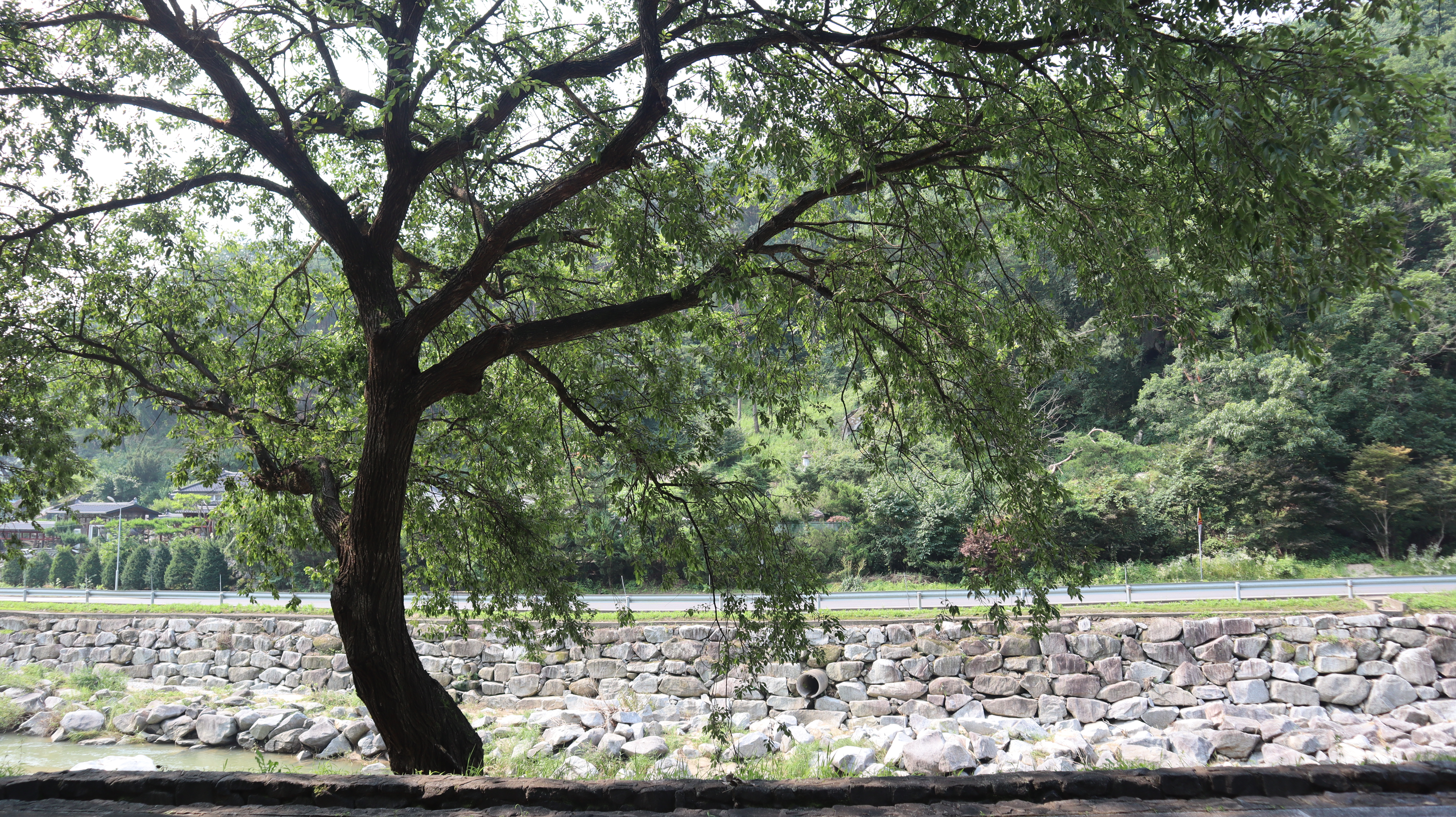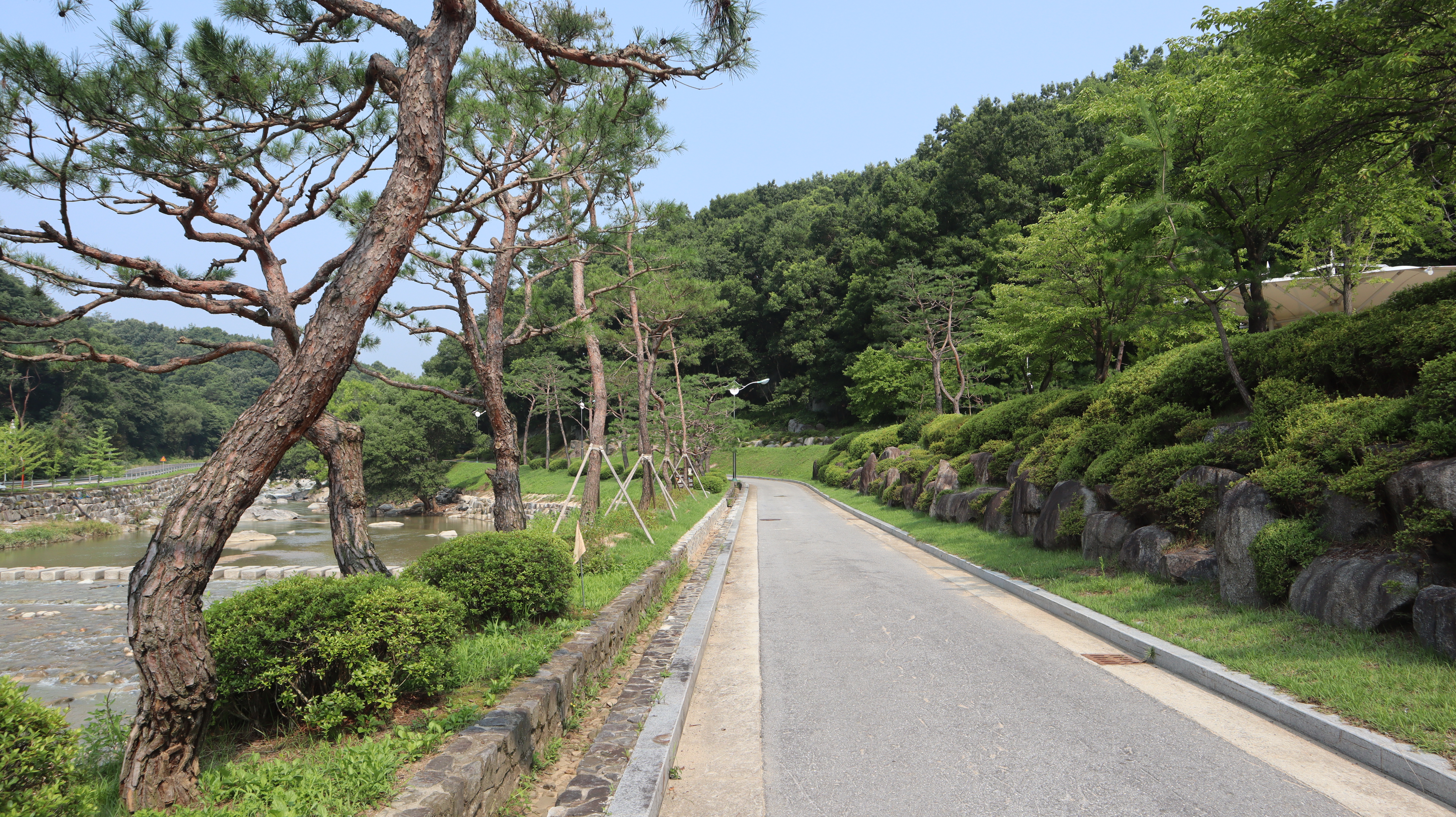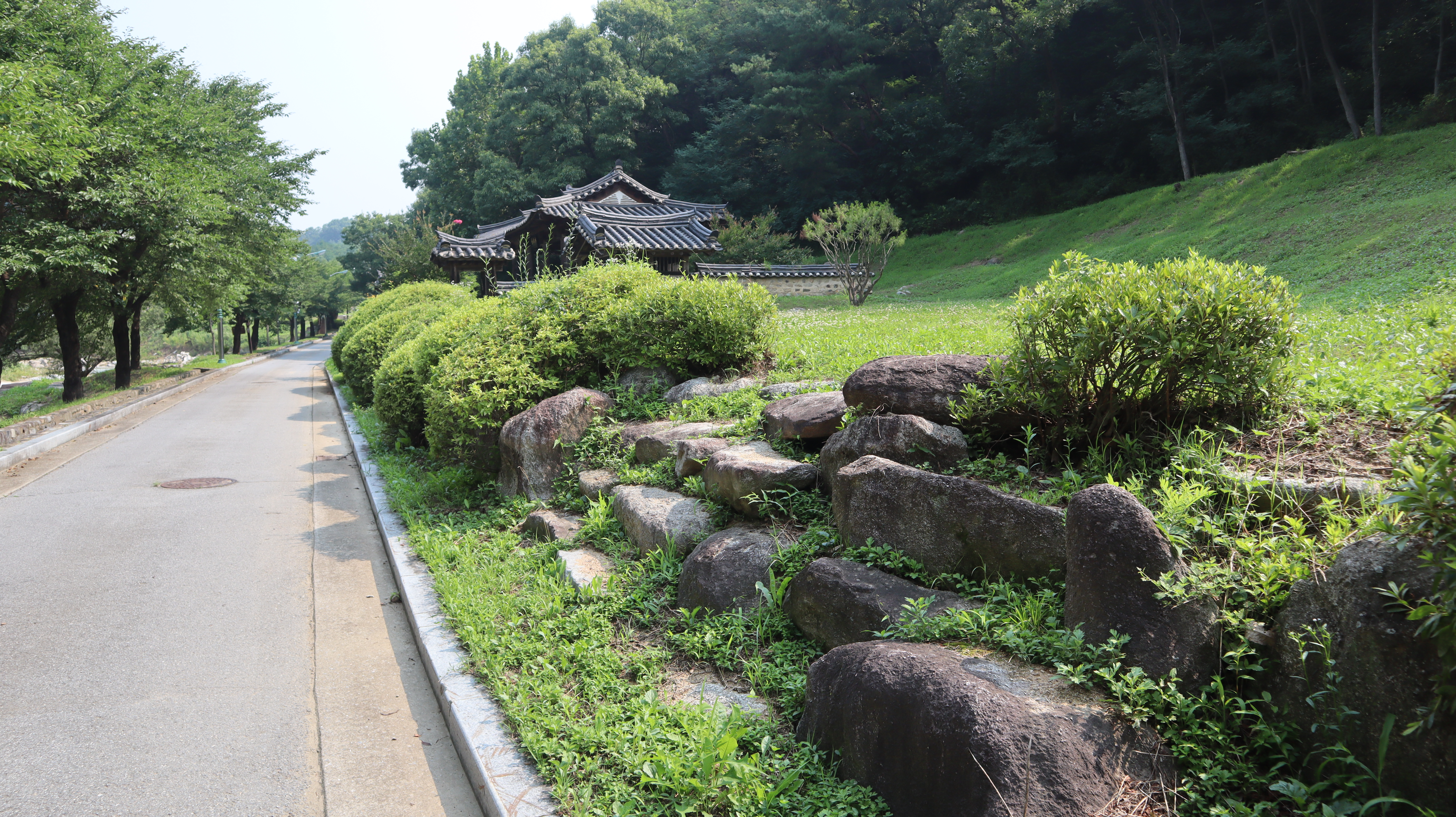 예천 수락대로 향하는 길입니다. 예천박물관 주차장에 주차를 한 후 도보로 걸어서 이동해보았습니다. 도로겸 인도 옆으로 시원하게 하천이 흐르는데 제가 방문했던 날에는 마침 비가온 다음날이었어서 물줄기가 시원스럽고 물 흘러가는 소리가 귀를 힐링시켜주는 느낌이었습니다.
