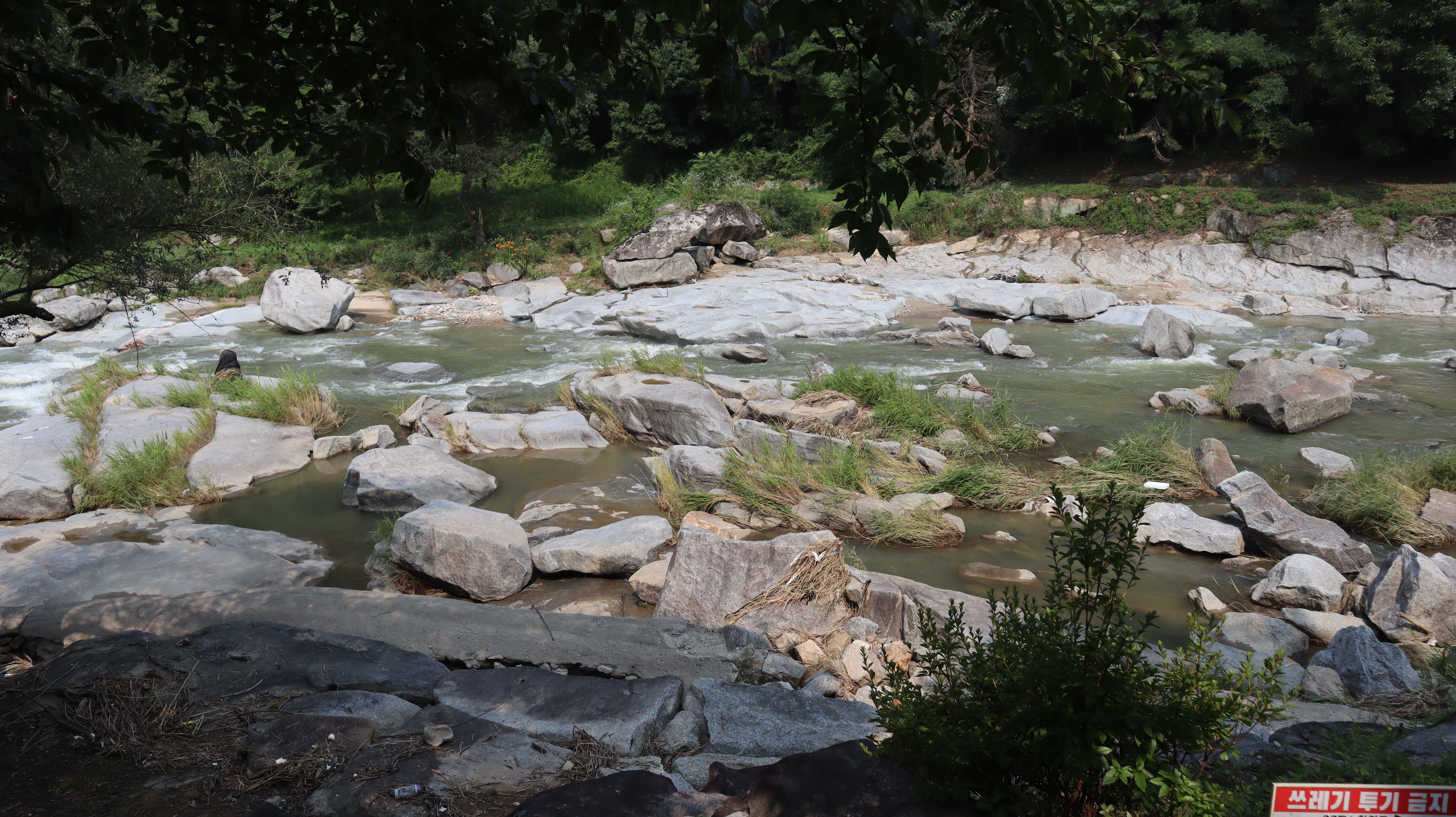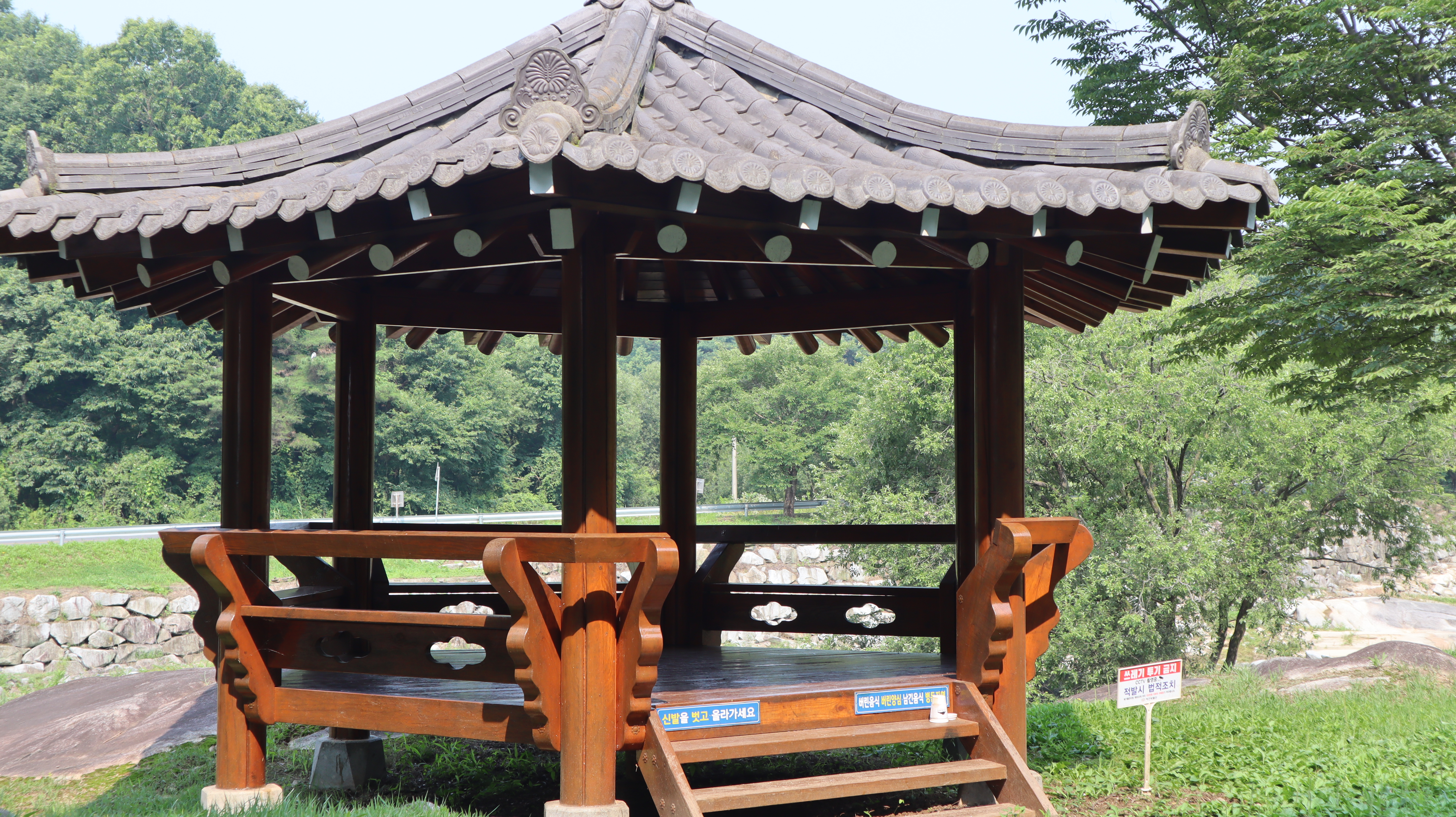 수락대로 향하는 길에 작은 정자도 만날 수 있고 여기에서 휴식을 취한 뒤 이동할 수도 있습니다. 정자에서 바라본 하천의 풍경이 장관입니다.