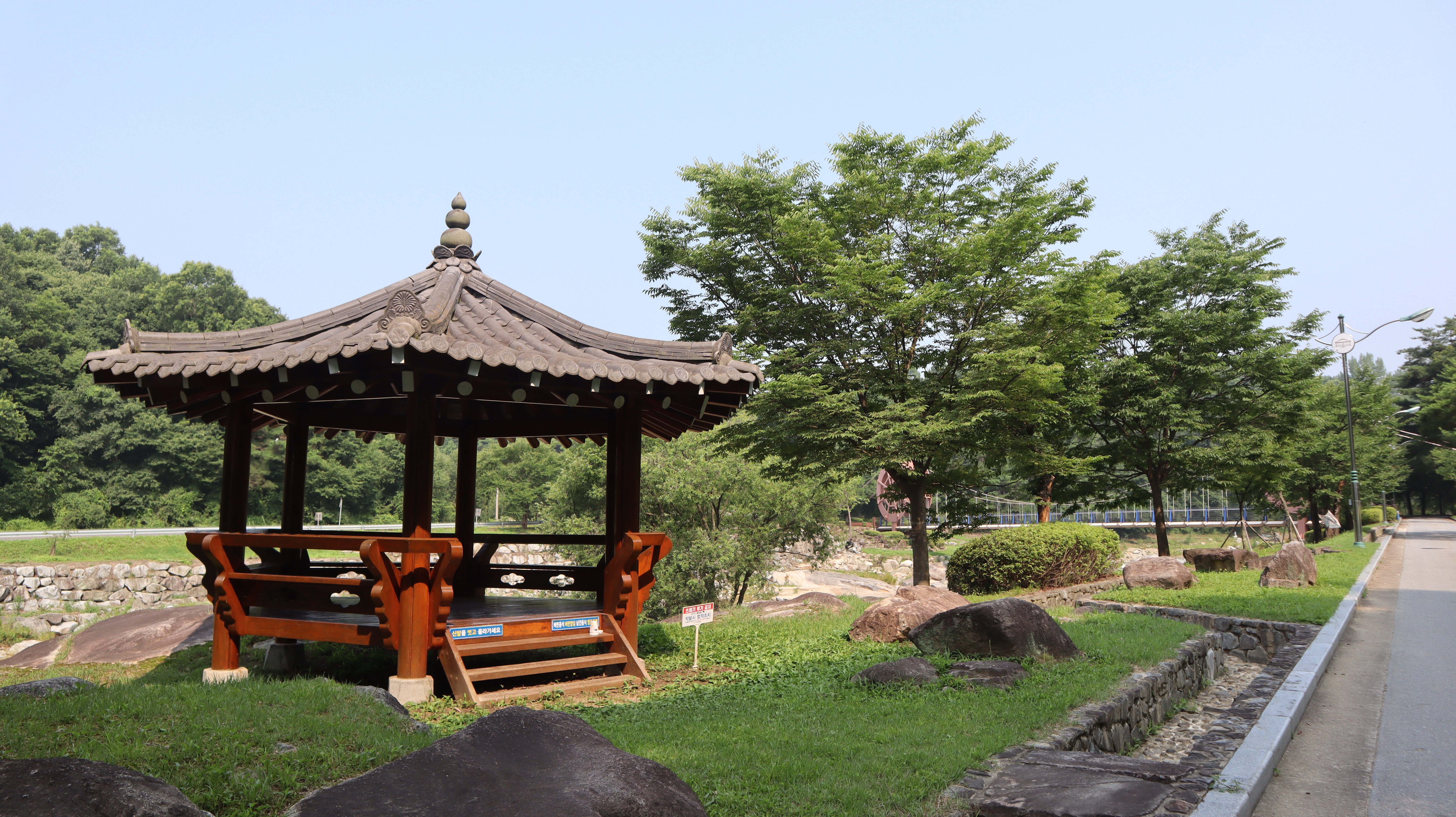 수락대로 향하는 길에 작은 정자도 만날 수 있고 여기에서 휴식을 취한 뒤 이동할 수도 있습니다. 정자에서 바라본 하천의 풍경이 장관입니다.