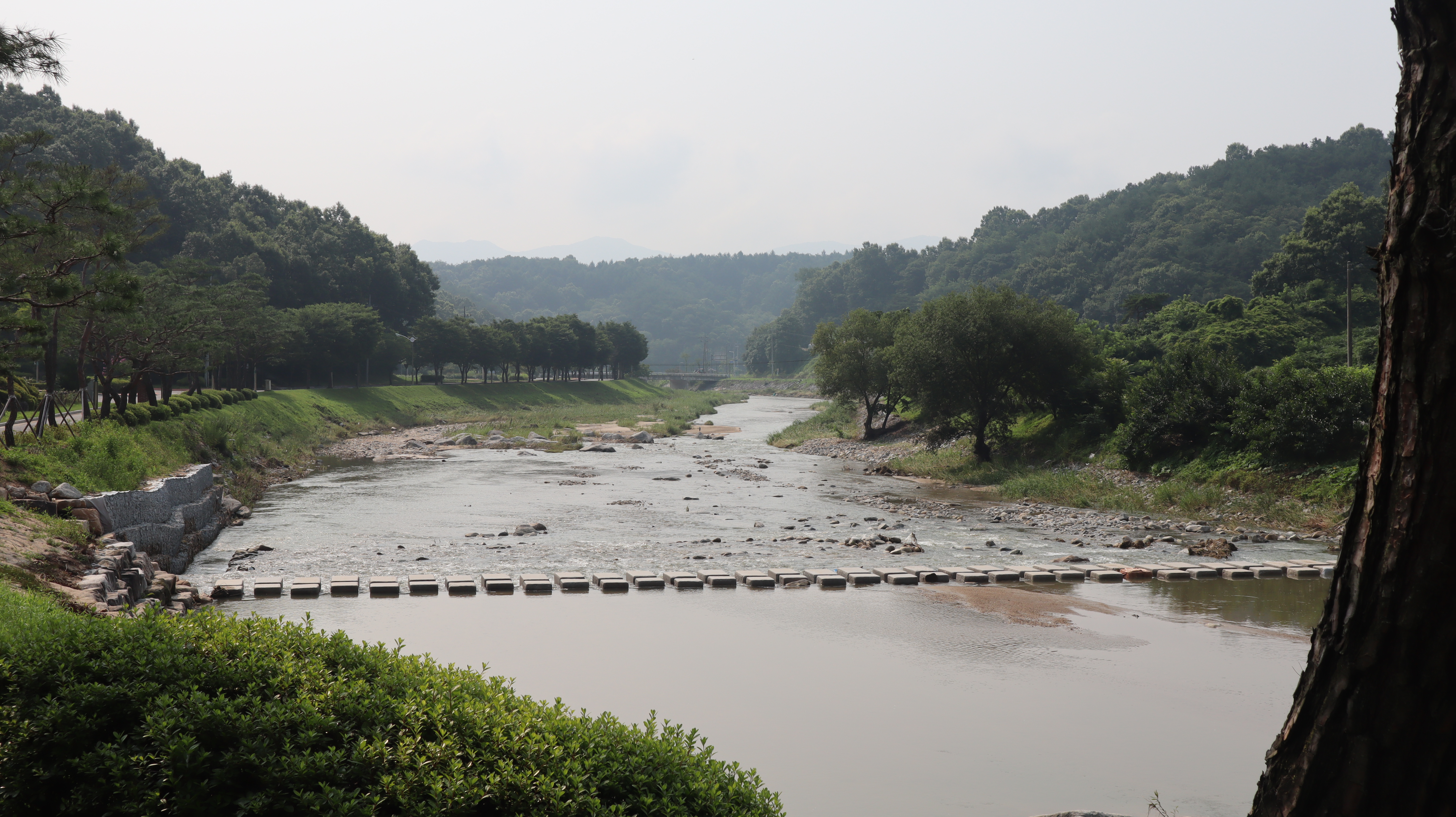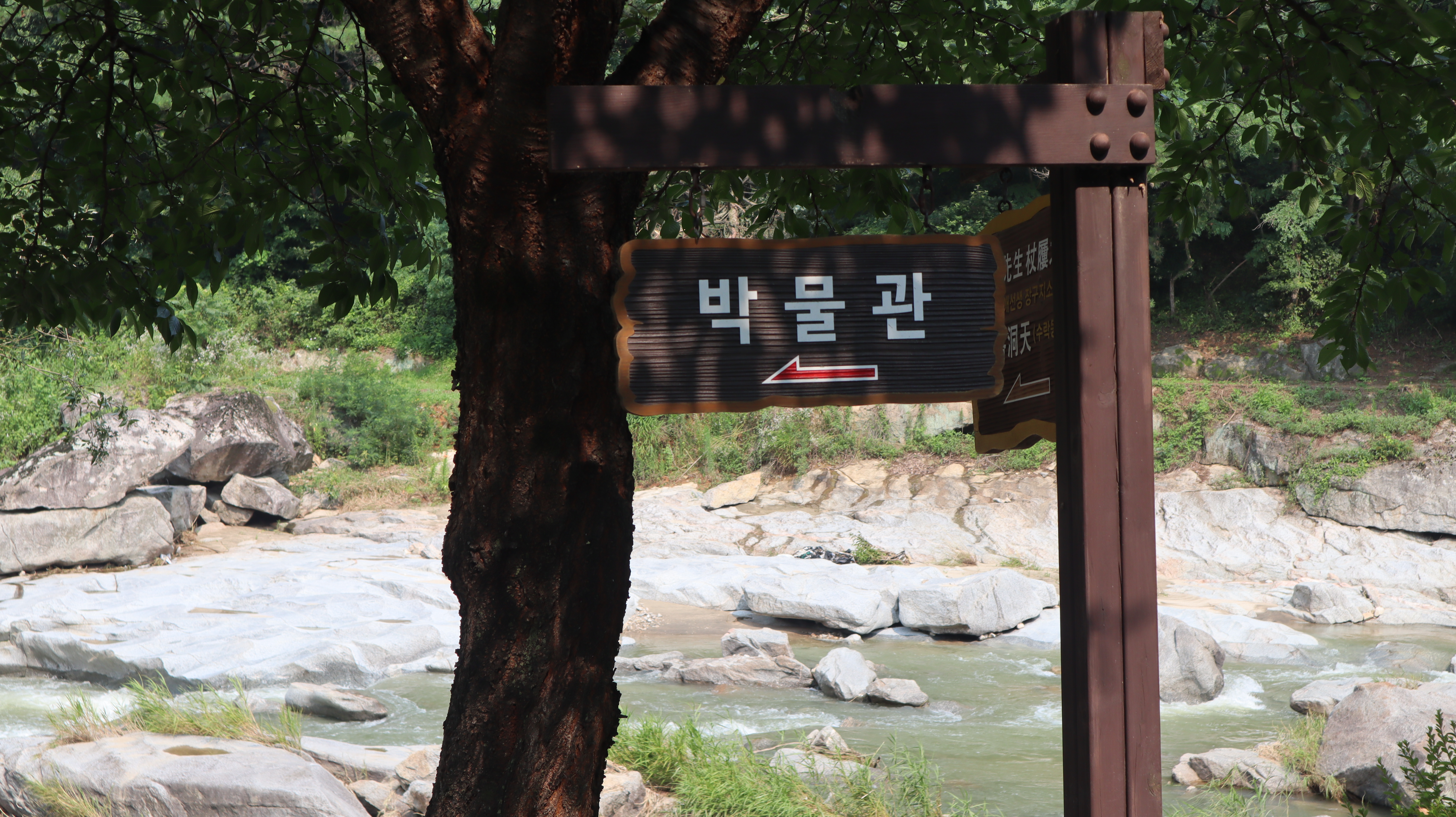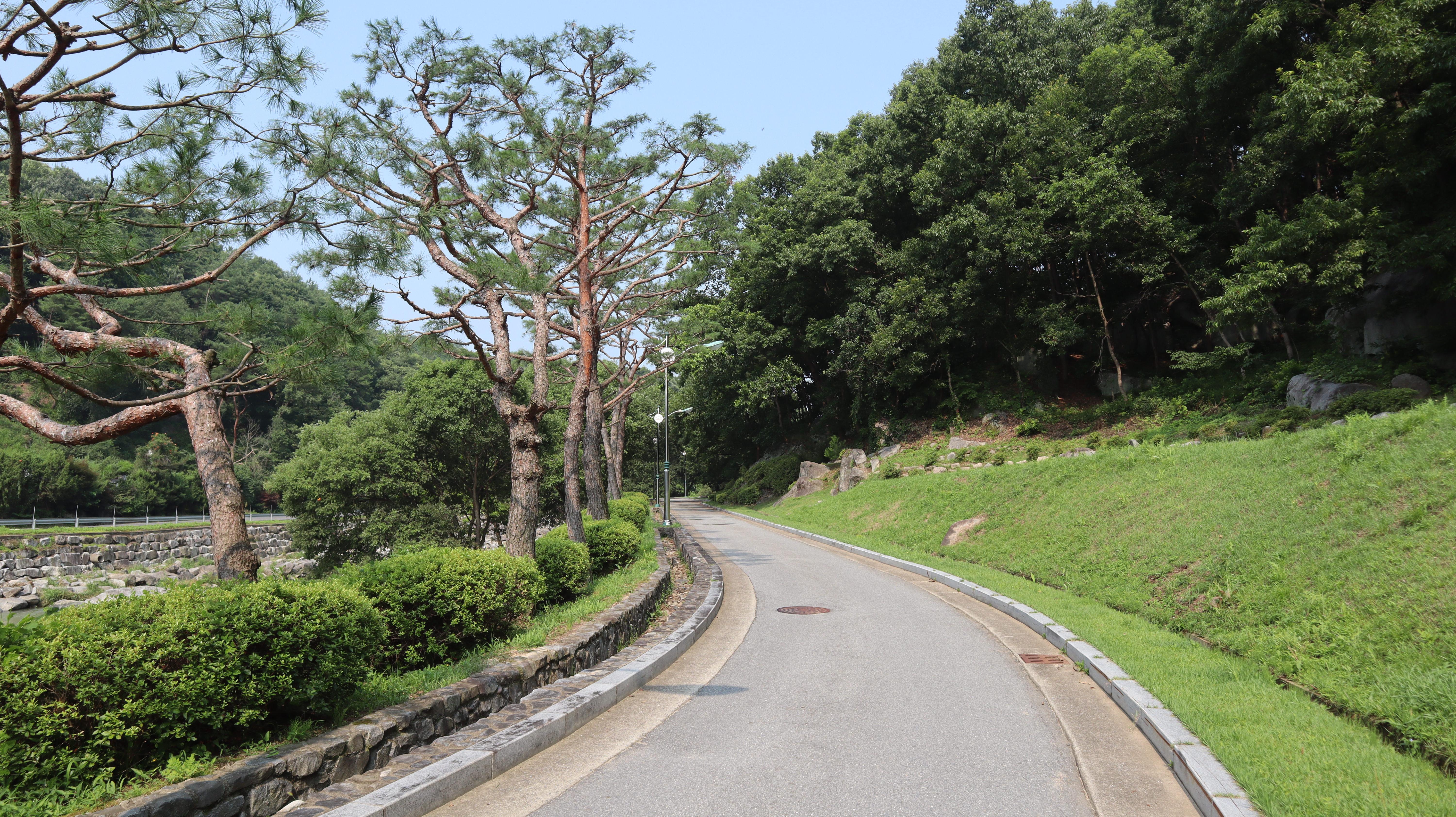 예천 수락대로 향하는 길입니다. 예천박물관 주차장에 주차를 한 후 도보로 걸어서 이동해보았습니다. 도로겸 인도 옆으로 시원하게 하천이 흐르는데 제가 방문했던 날에는 마침 비가온 다음날이었어서 물줄기가 시원스럽고 물 흘러가는 소리가 귀를 힐링시켜주는 느낌이었습니다.