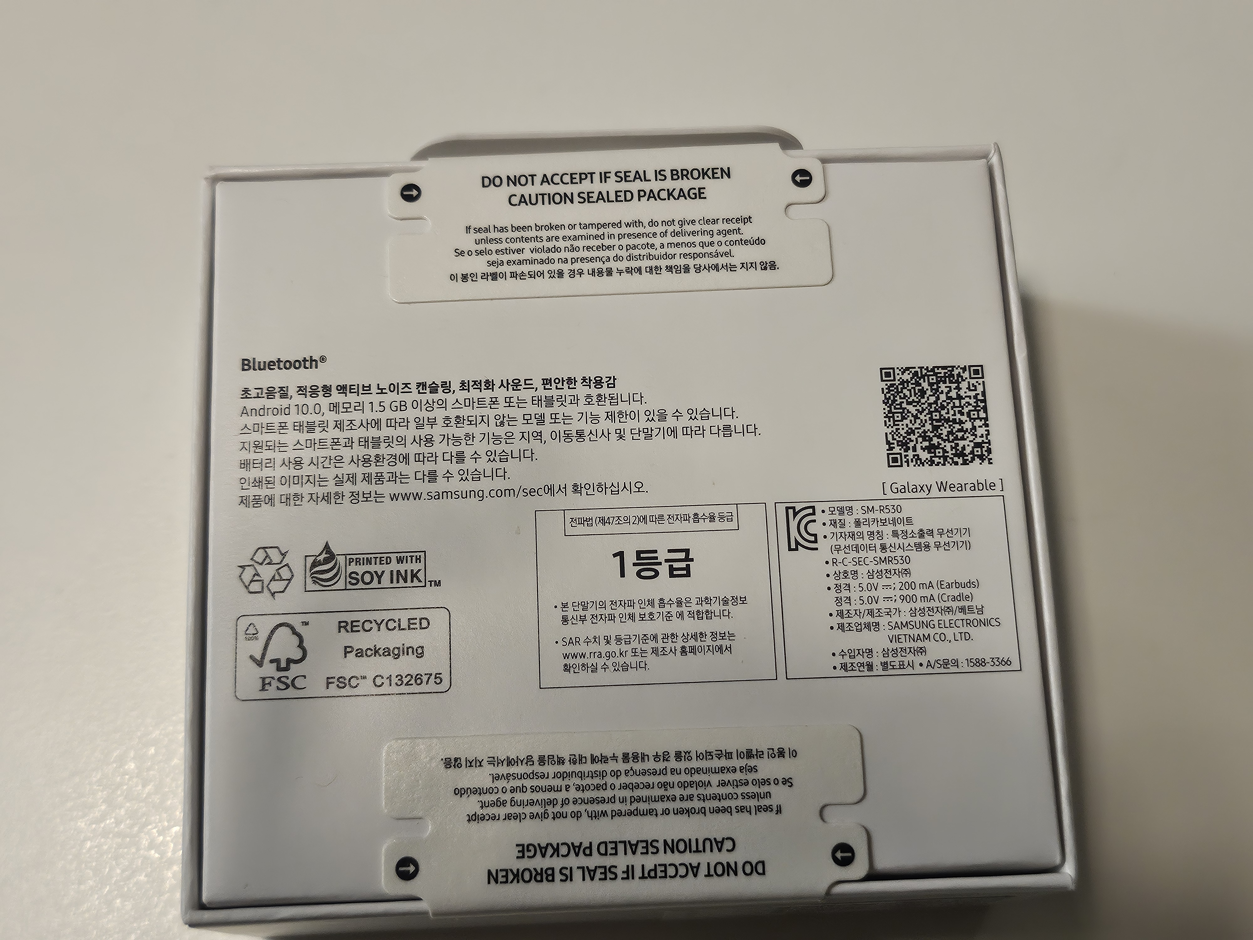 쿠팡에서 구매하였고요. 박스 뒷면에 어쩌고 저쩌고 적혀있네요. 초고음질, 적응형 액티브 노이즈 캔슬링, 최적화 사운드, 편안한 착용감이 있다고 합니다.