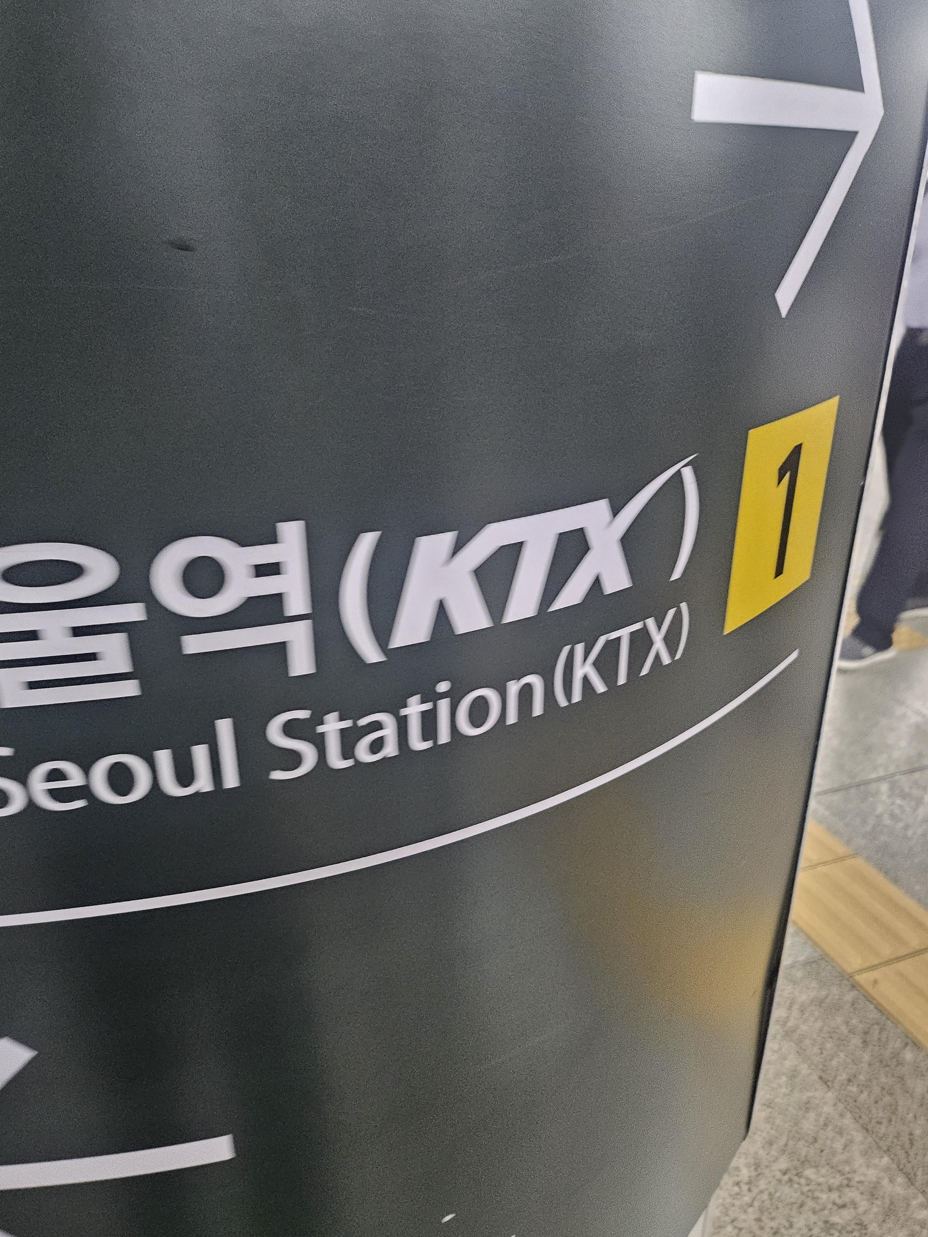 1호선에서 반대로 서울역으로 갈 경우에는 위 사진의 반대로 이동하면 됩니다. 1호선 서울역에서 하차 후 동선따라 이동하면 KTX타는 곳이라는 화살표를 보고 계속 이동하면 됩니다.